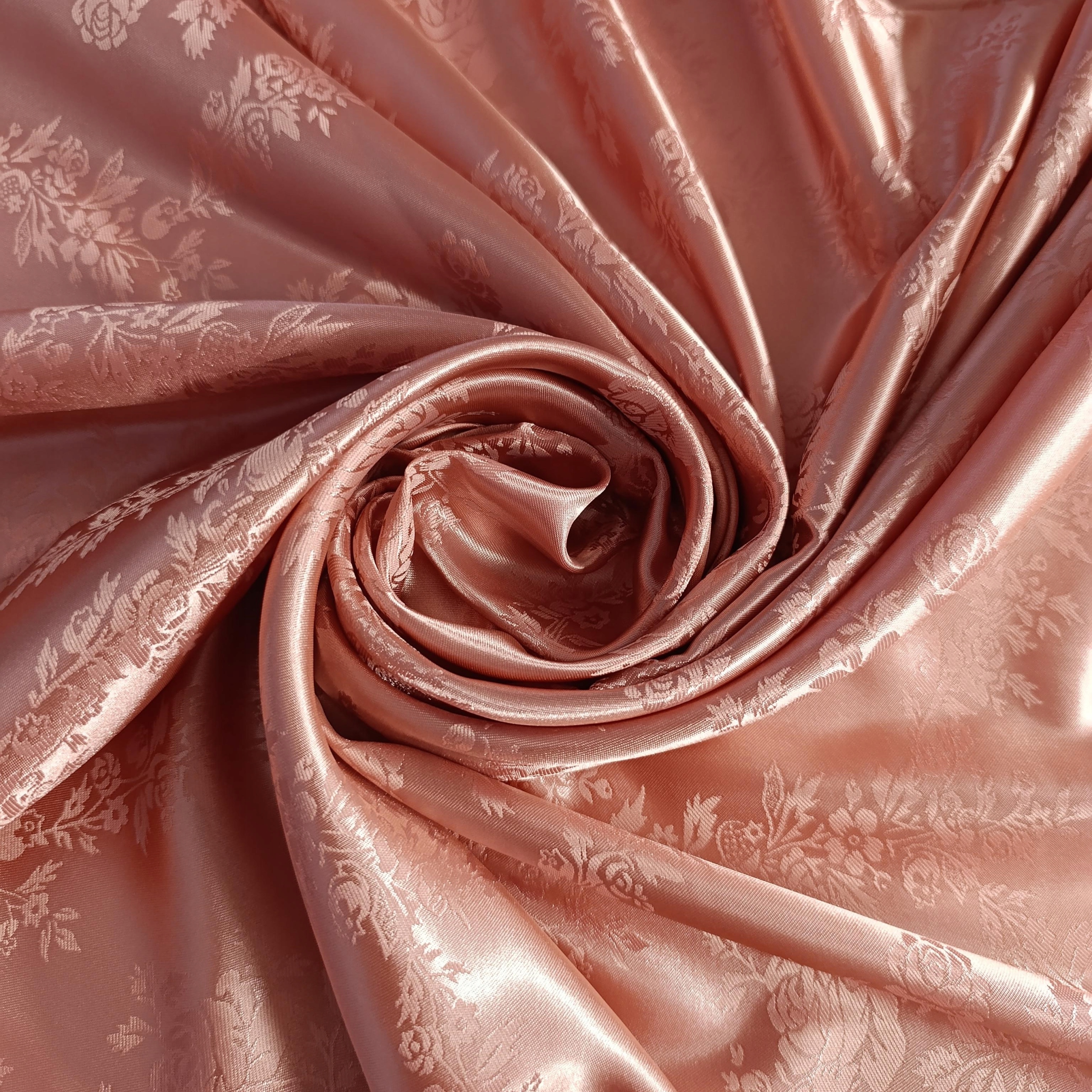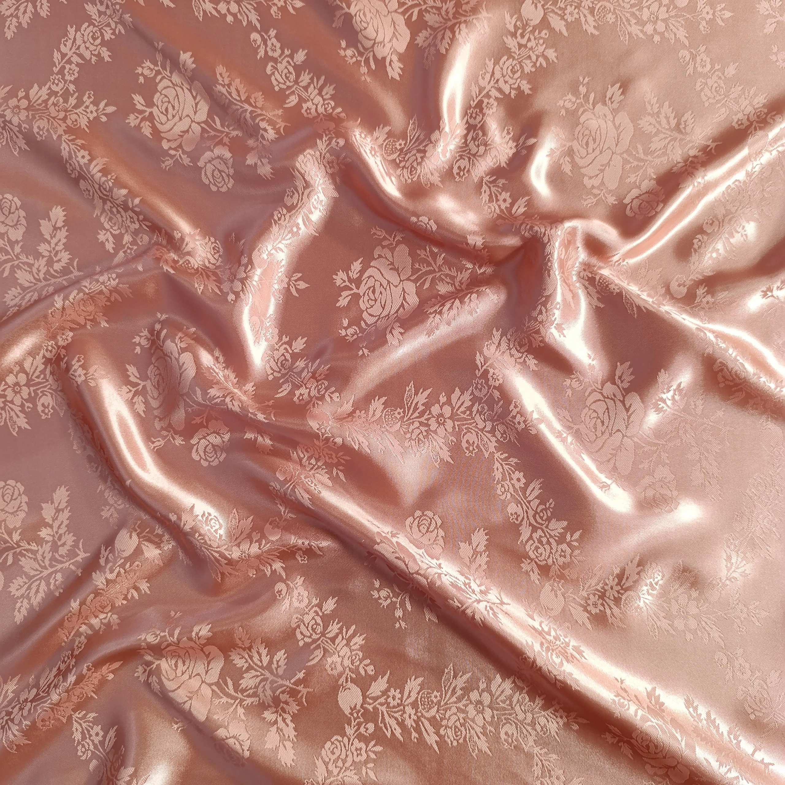 Atłas żakard w Kwiaty / Róże Brudny Róż -1/2mb