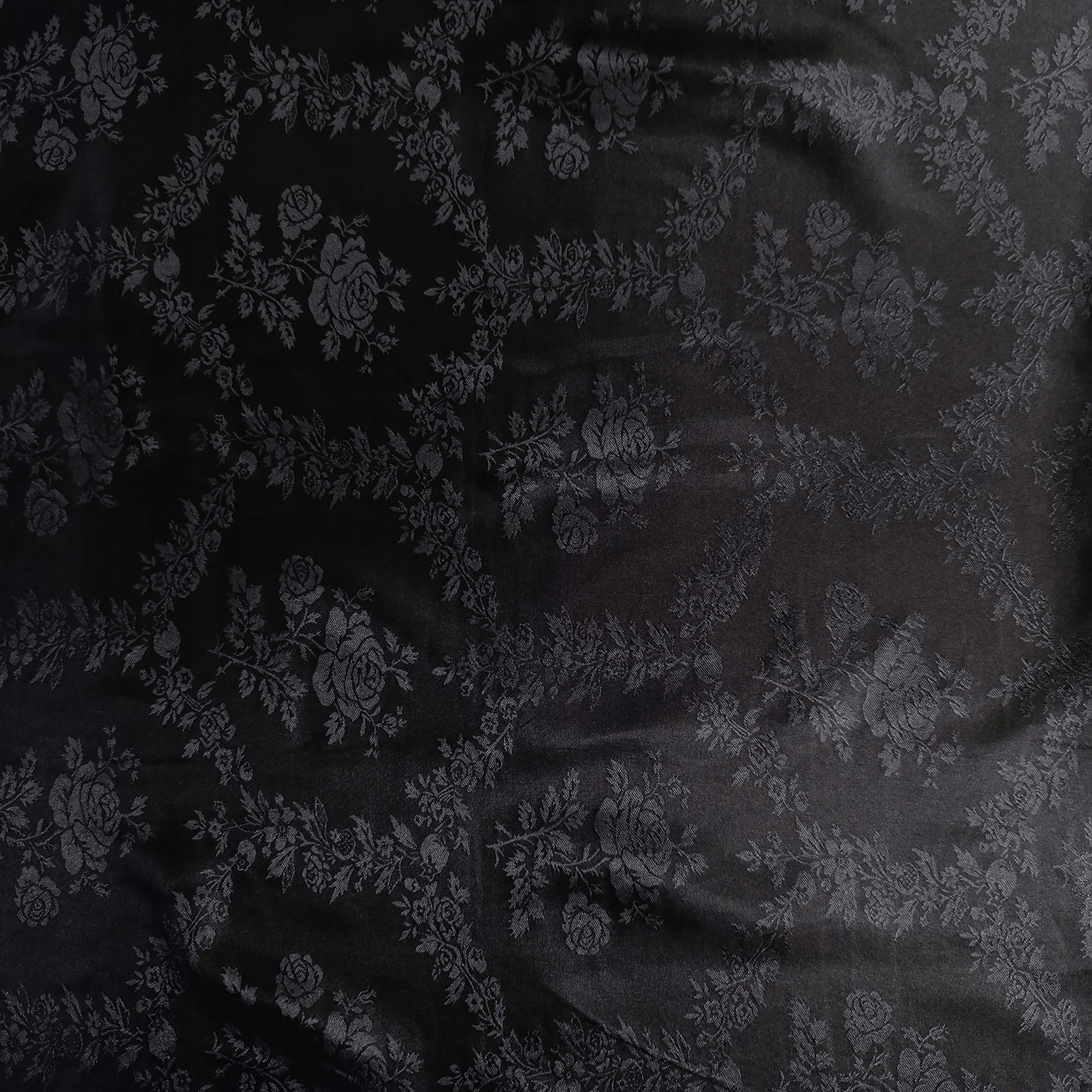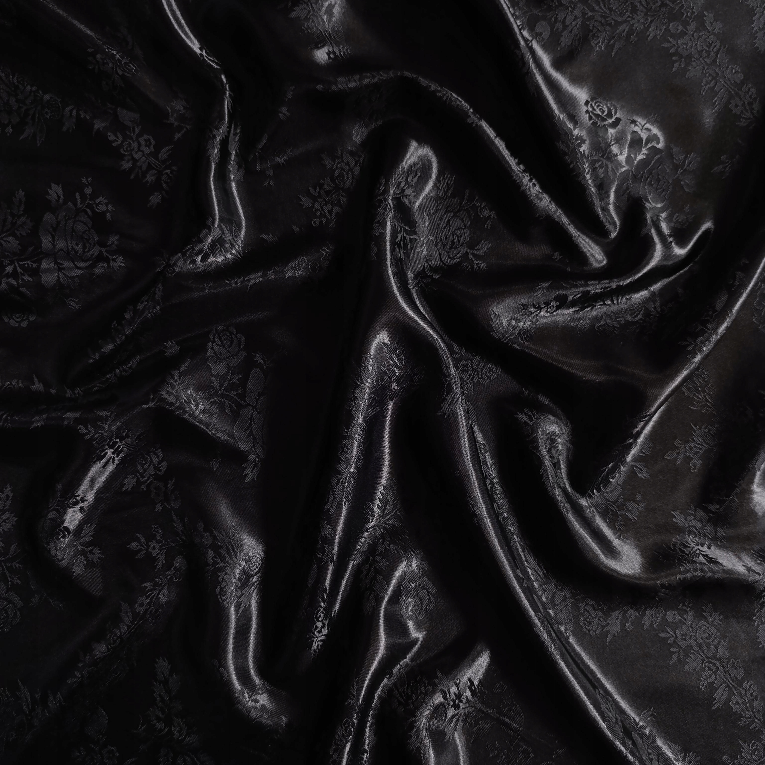 Atłas żakard w Kwiaty / Róże Czarny -1/2mb