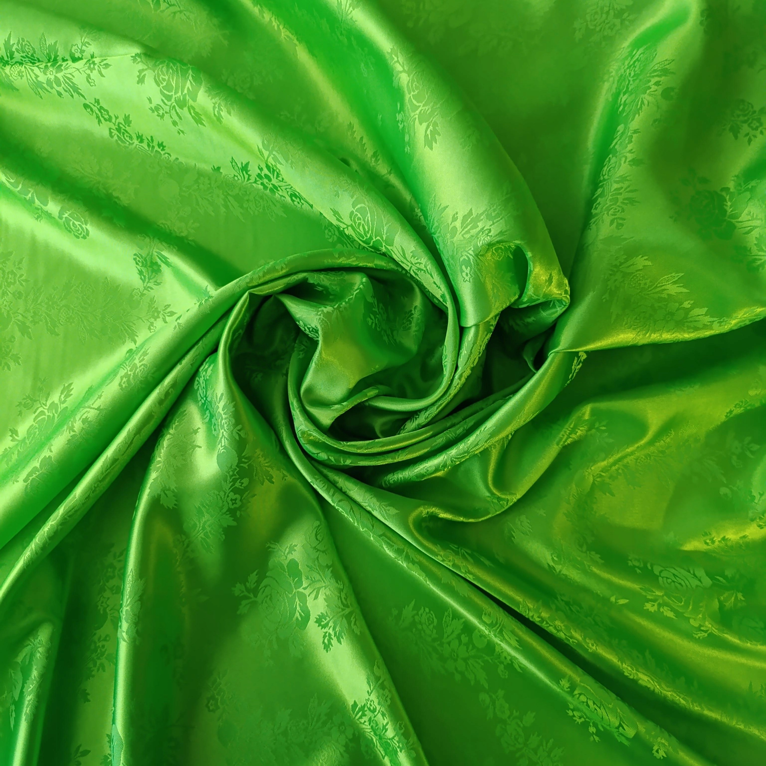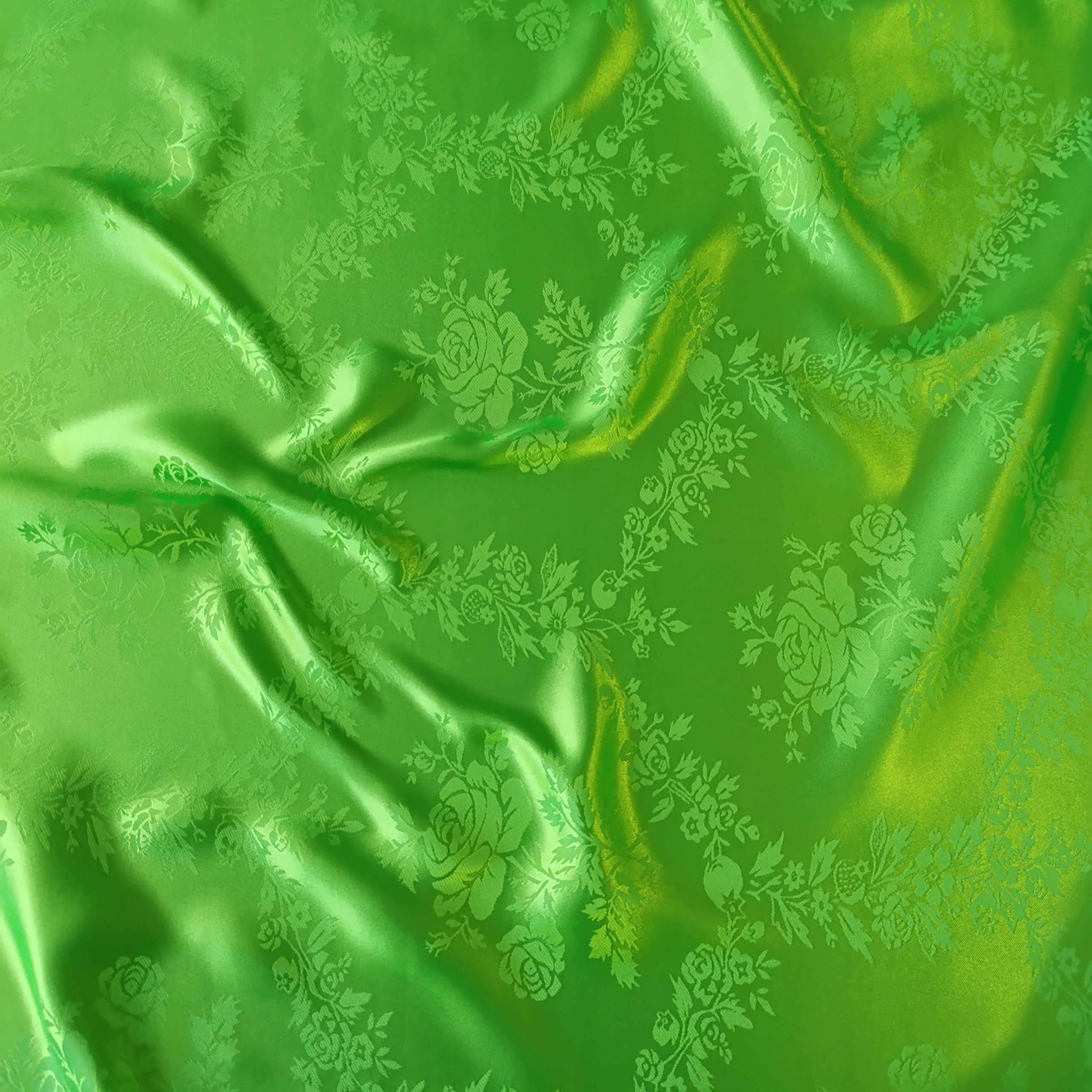 Atłas żakard w Kwiaty / Róże Jasny Zielony -1/2mb