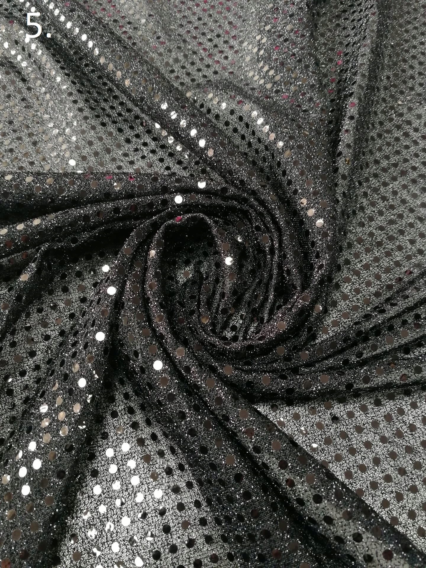 Dzianina z naklejanymi cekinami „Cekiny Lilu” nr.5 Czarny -1/2mb