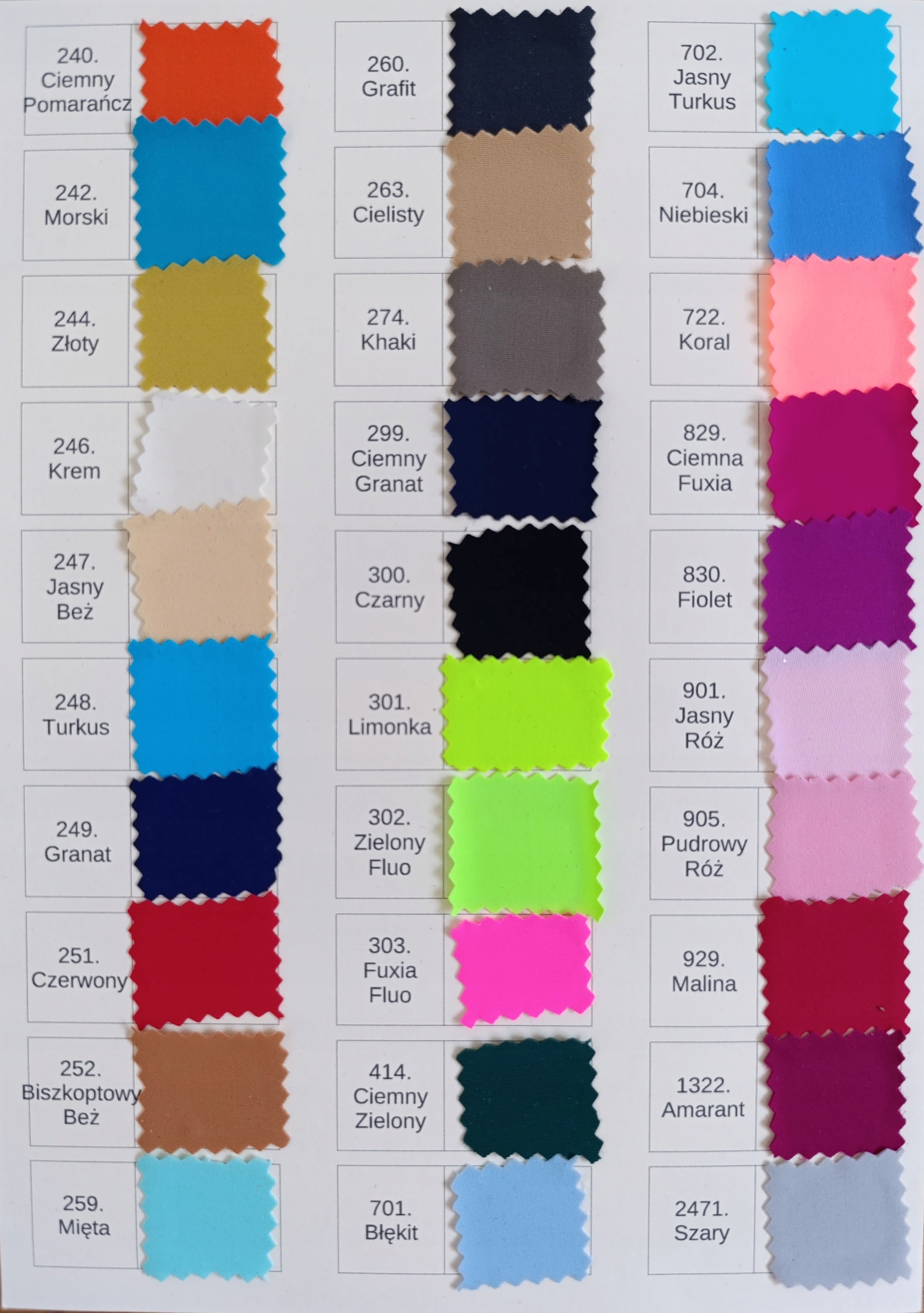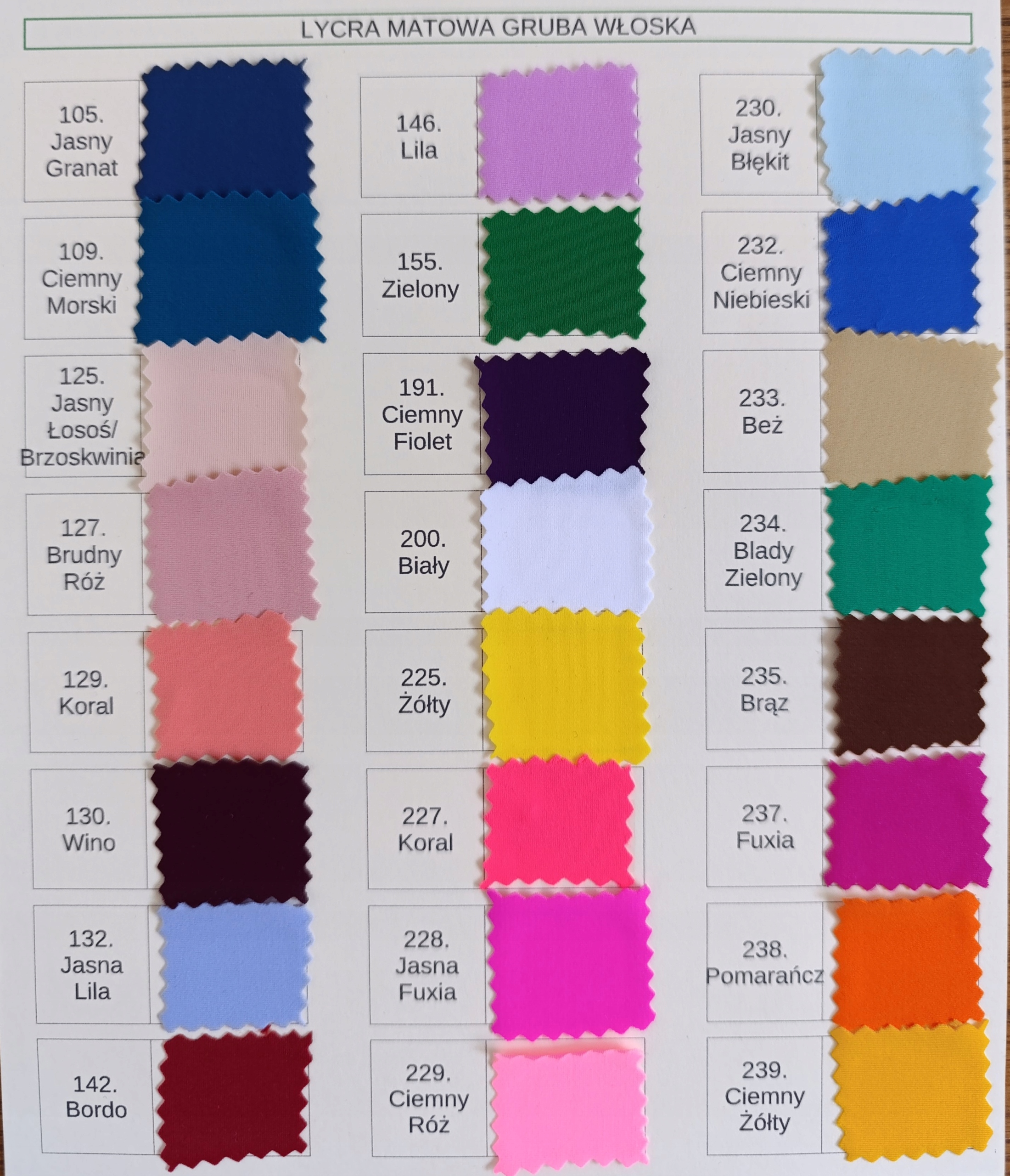 Karta Kolorów (dwustronna) Lycra Matowa Gruba