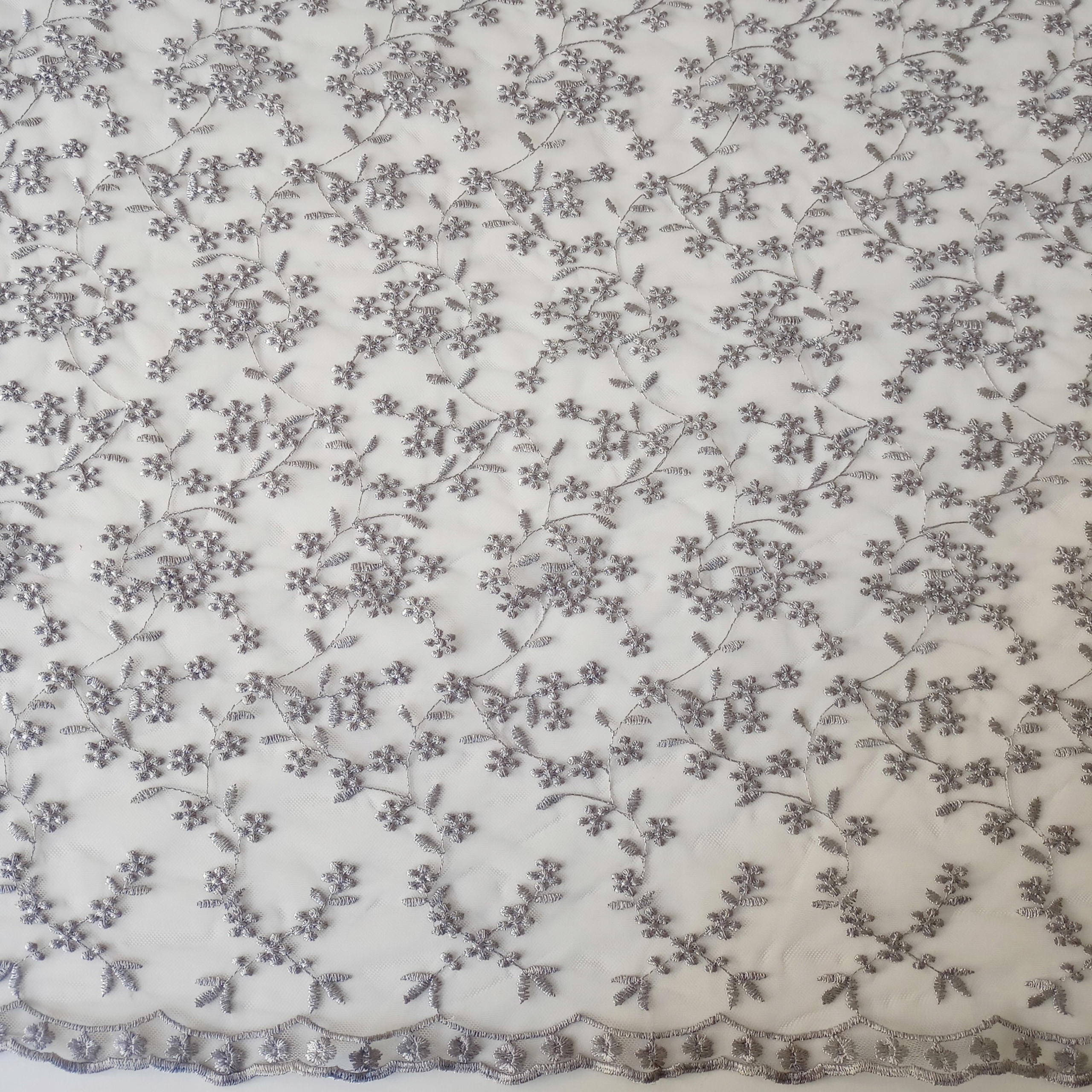 Koronka Haft Drobne Kwiatki HT303 Szary -1/2mb