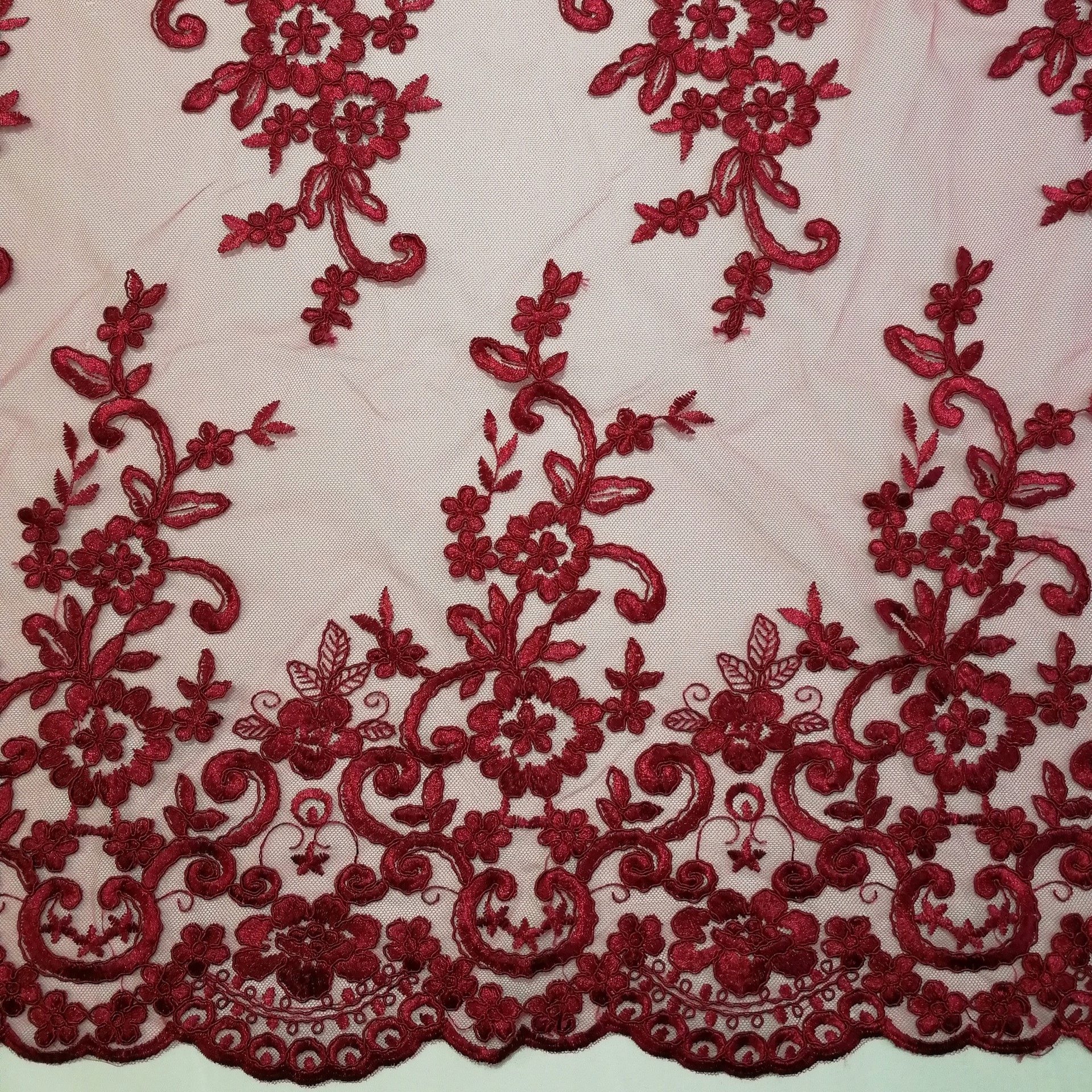 Koronka Haft Koder Wieczorowy Ślubne HT301 Bordo -1/2mb