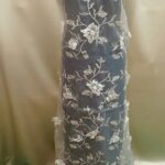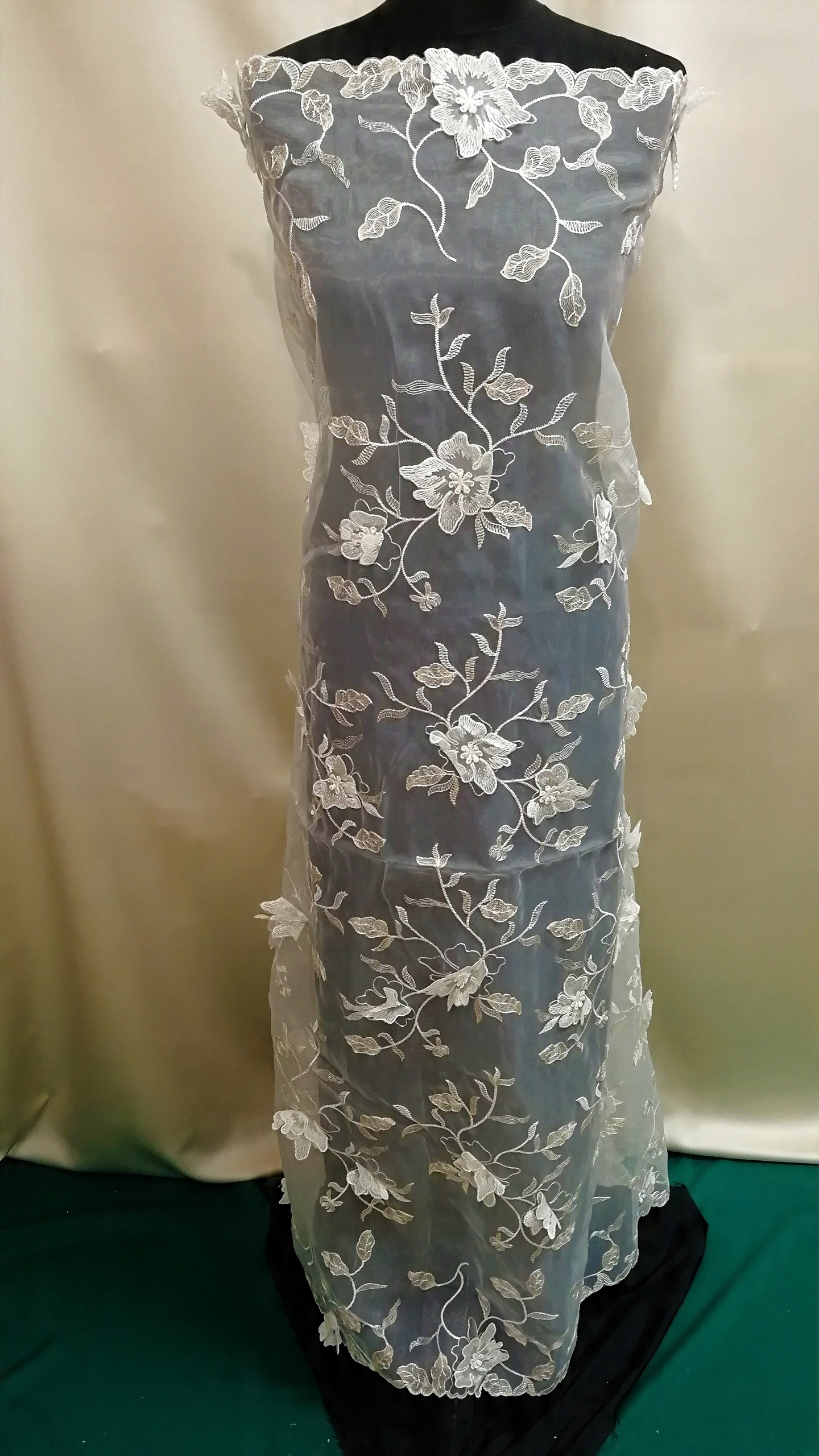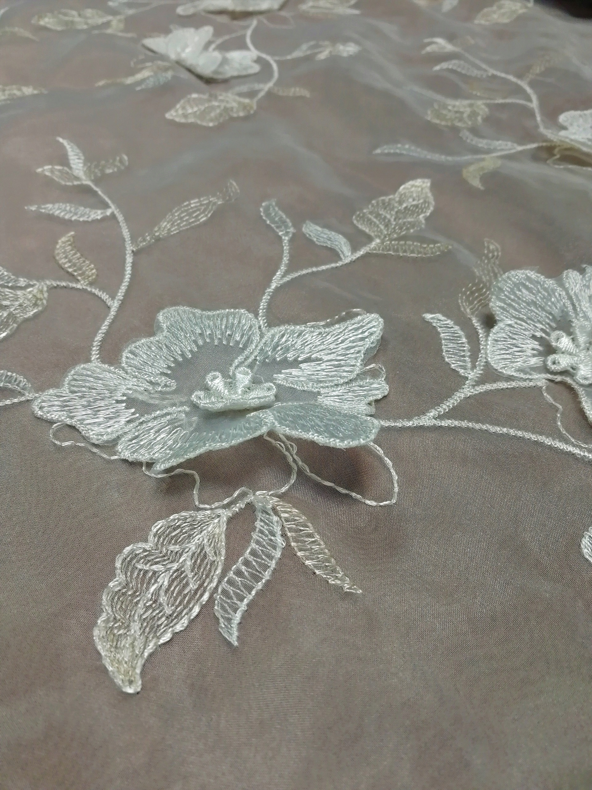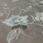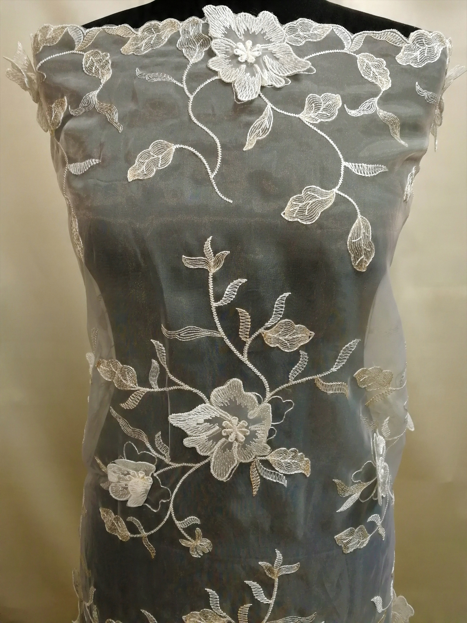 Haft na Organdynie w kwiatowy wzór z dodatkiem kwiatów 3D HO1061 Krem + Beż