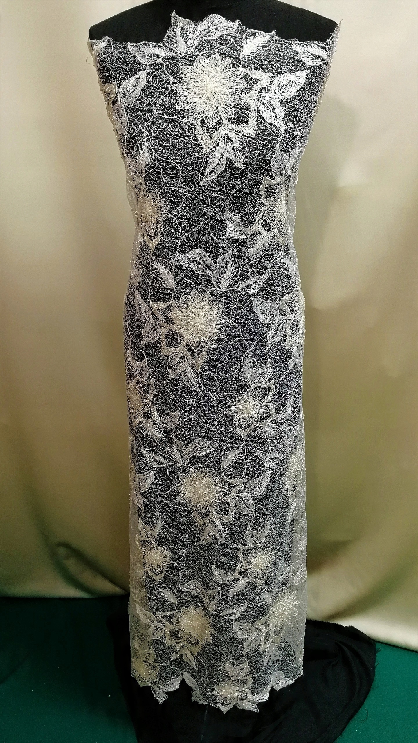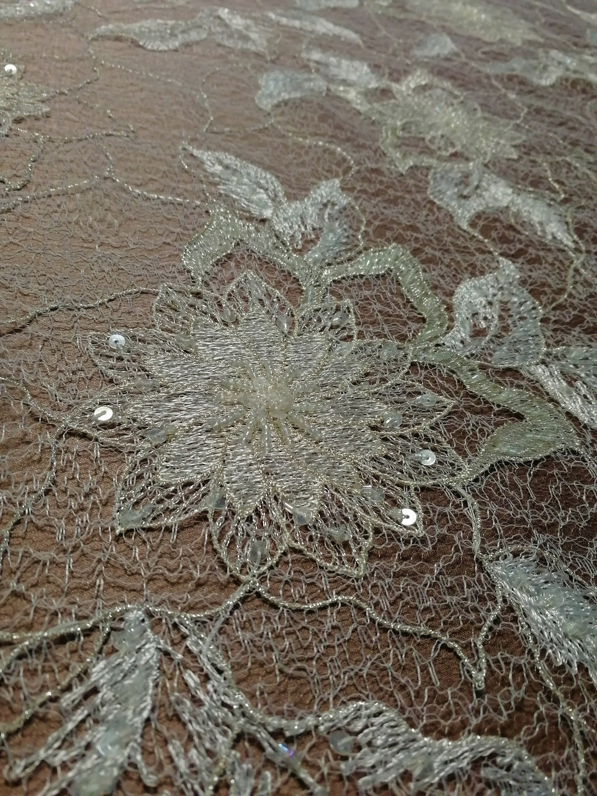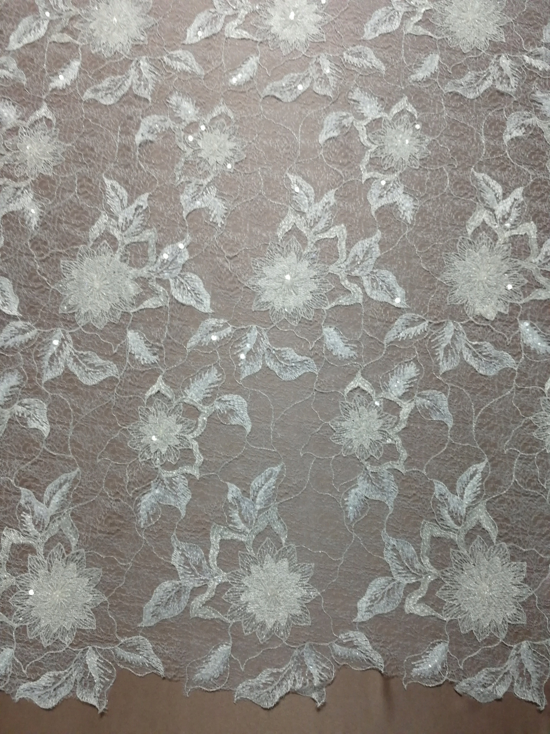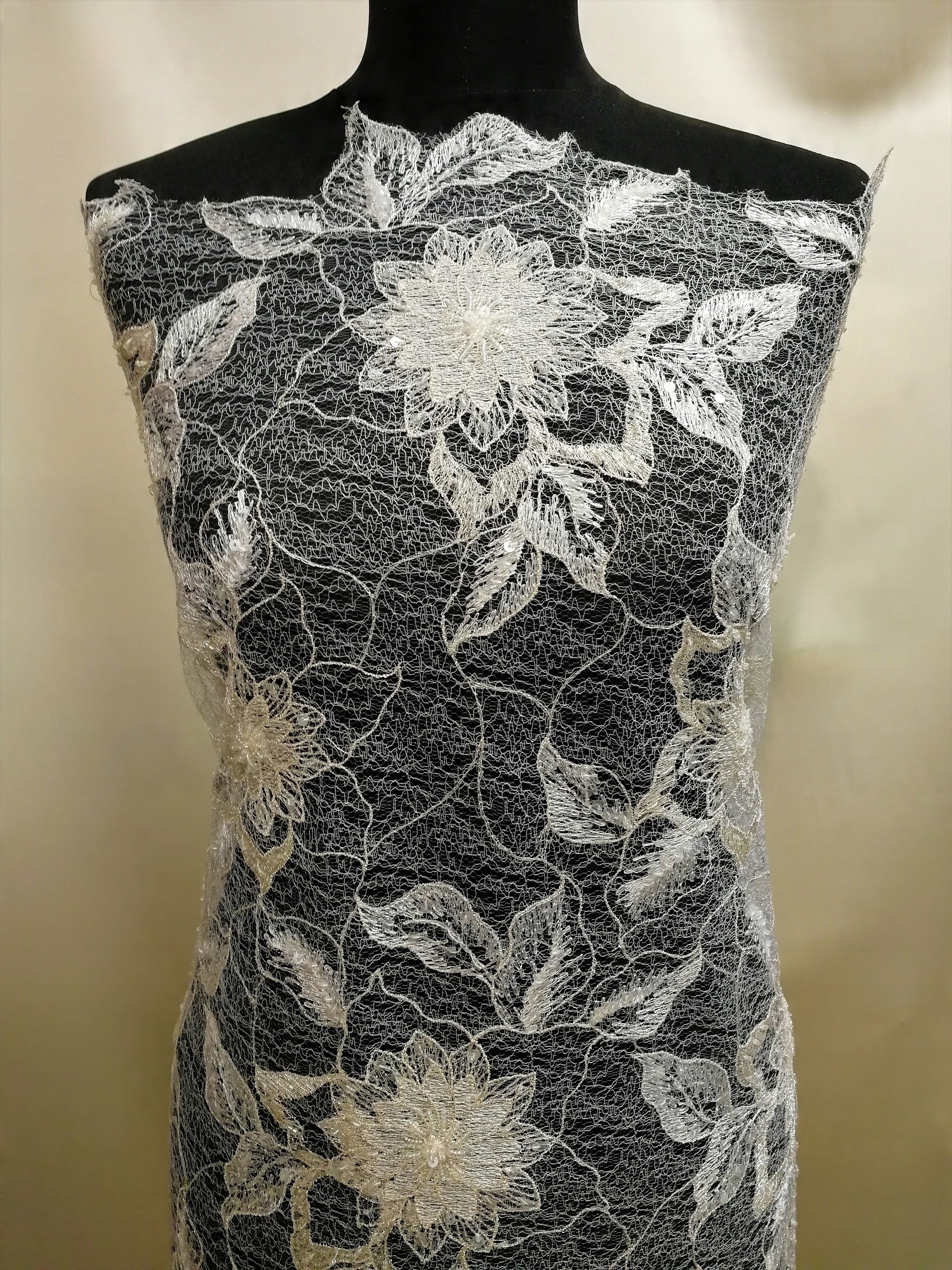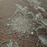 Haft na tiulu w kwiatowy wzór HT 1056P biały + platyna