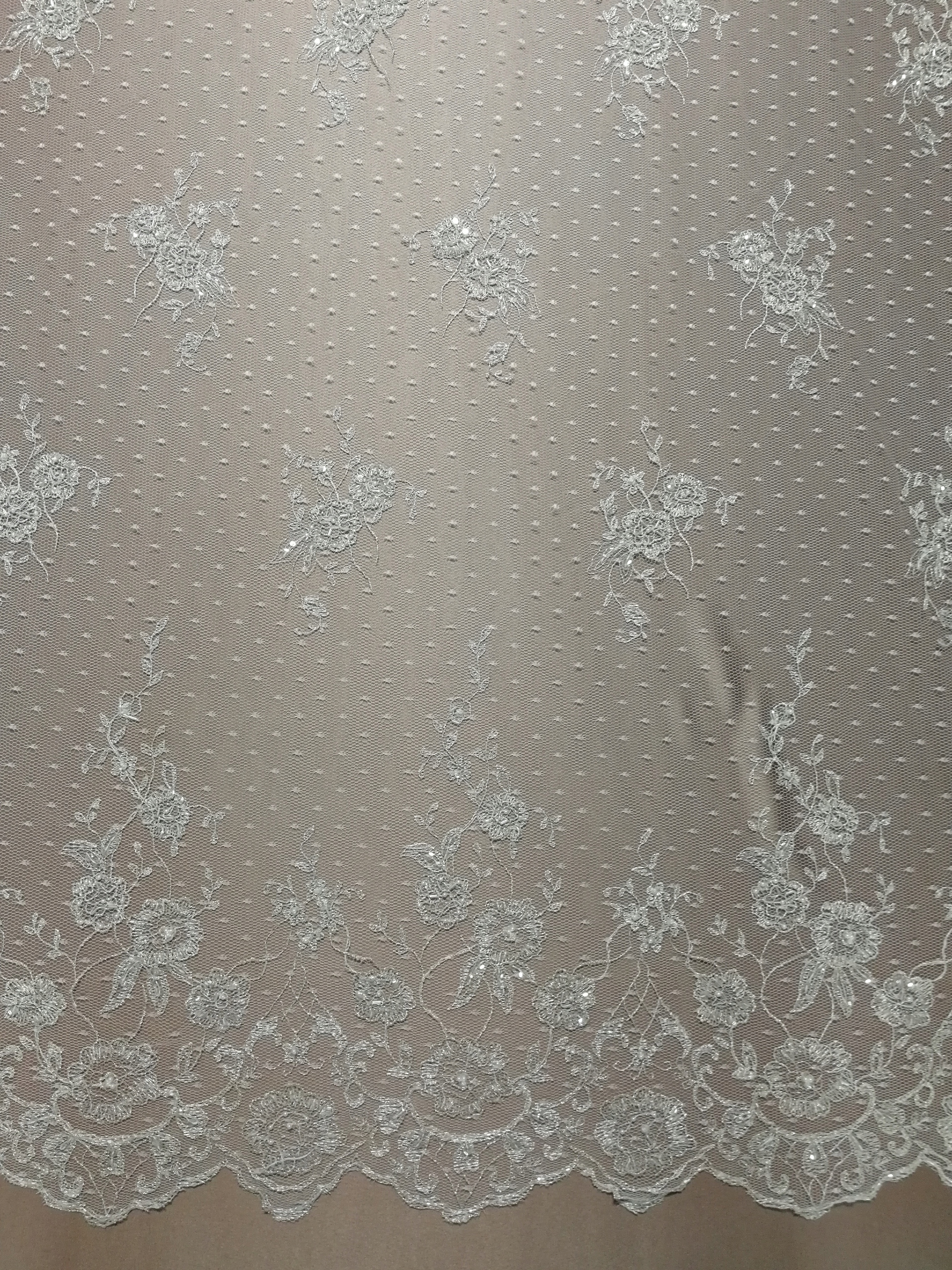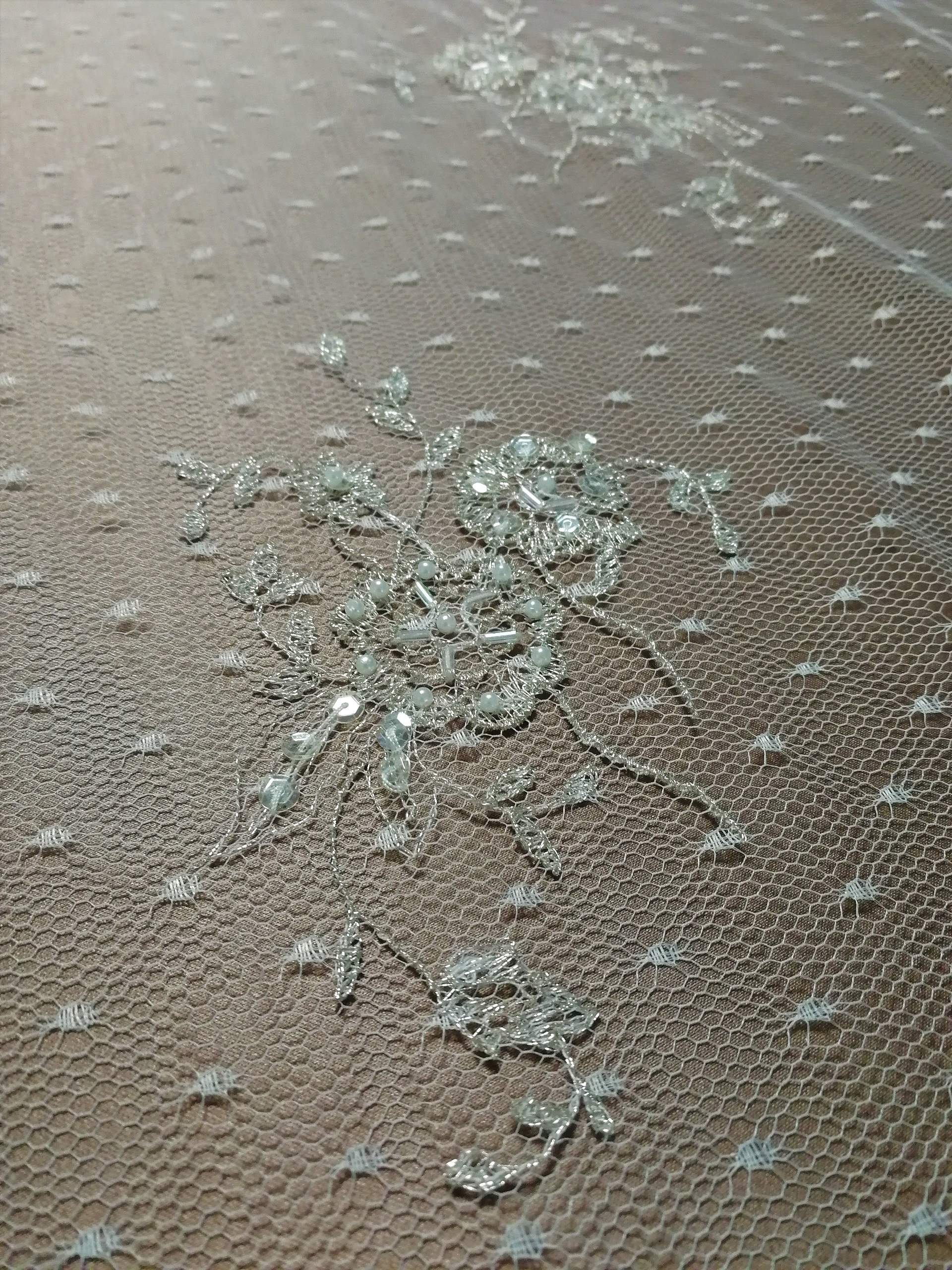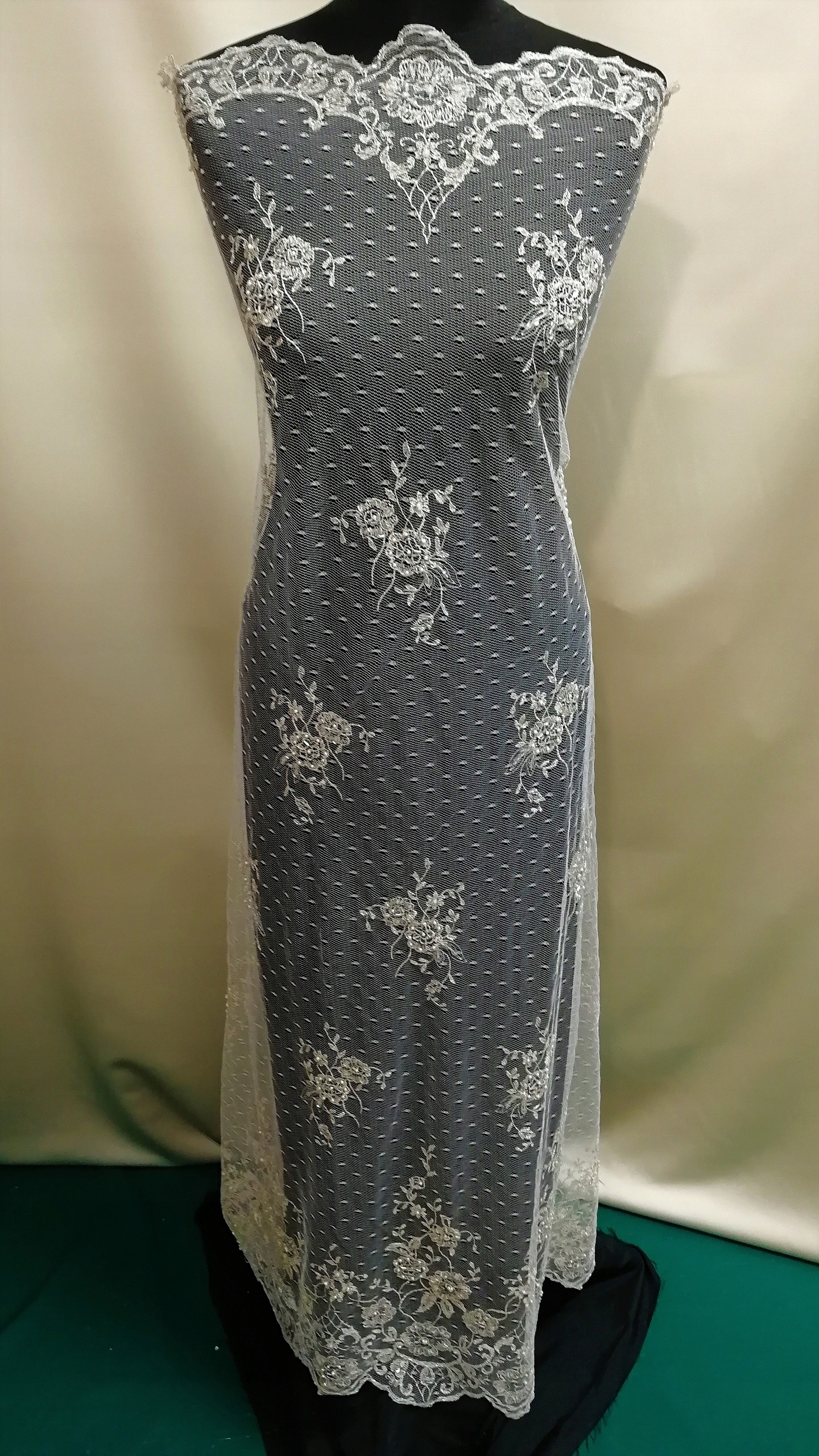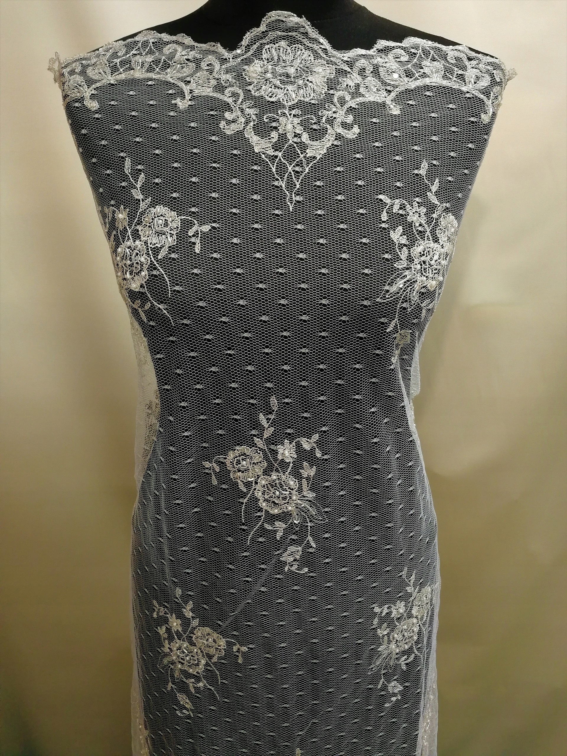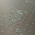 Haft na tiulu w kwiatowy wzór HT 1067P biały + platyna