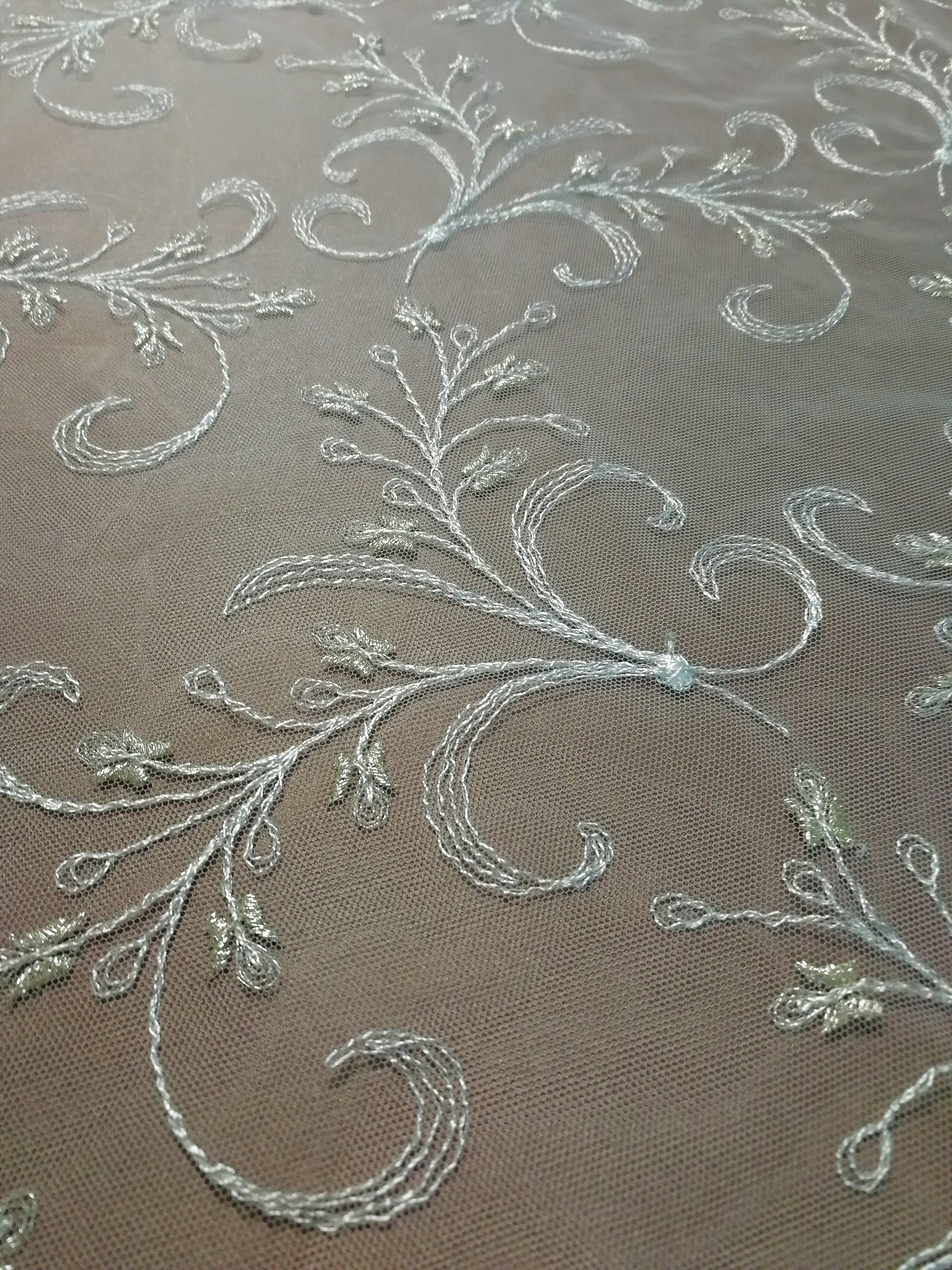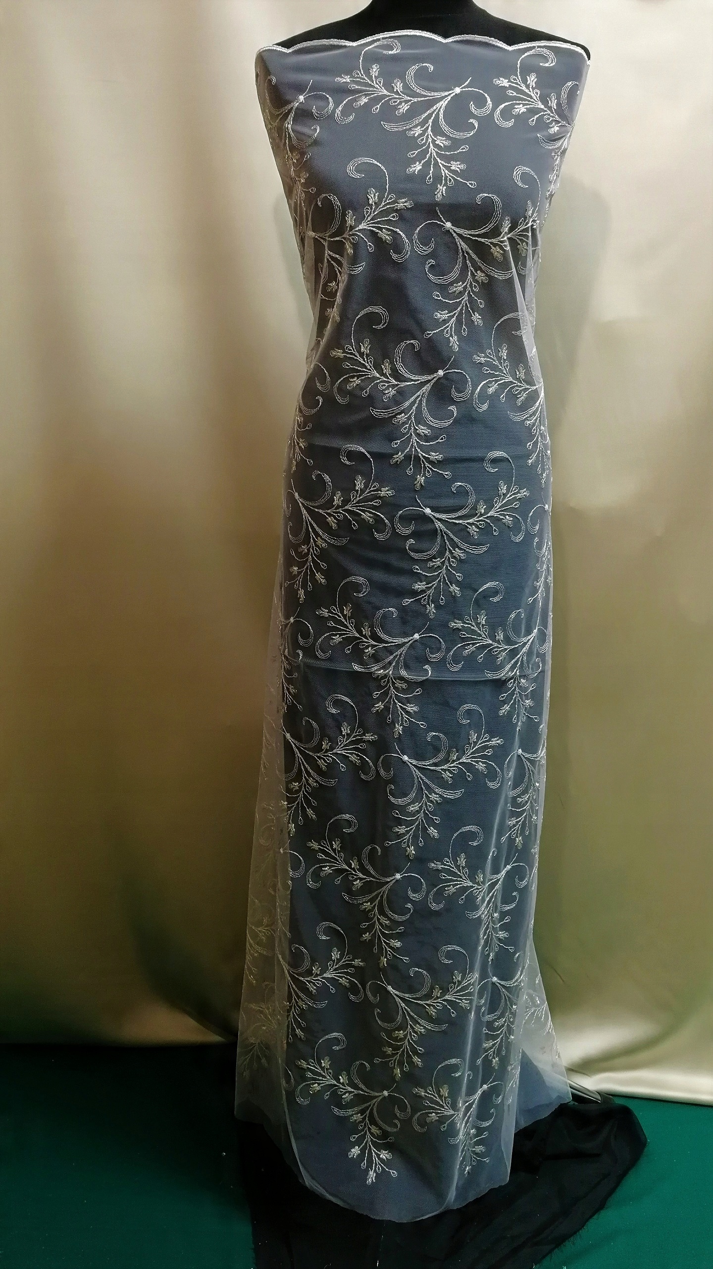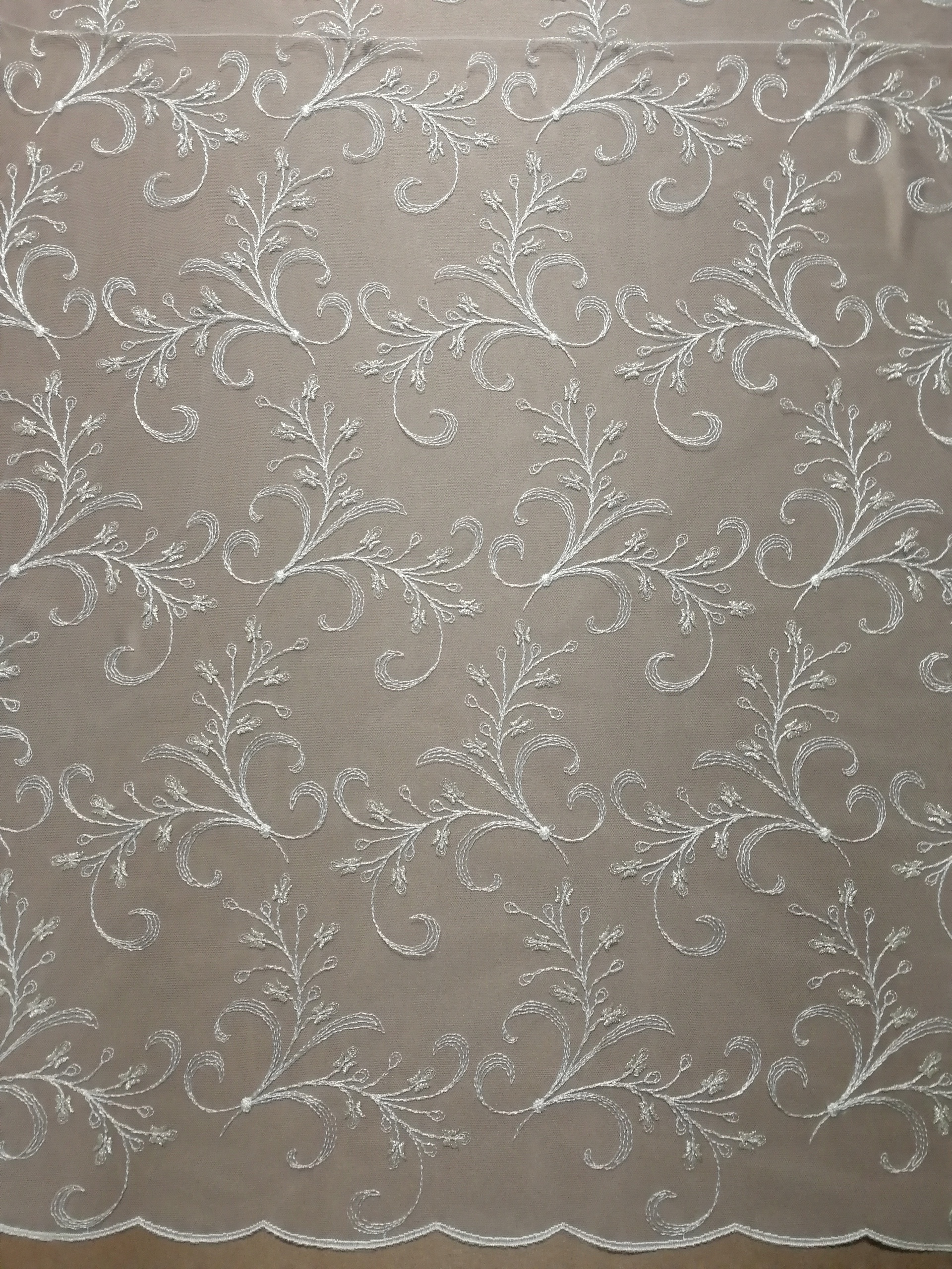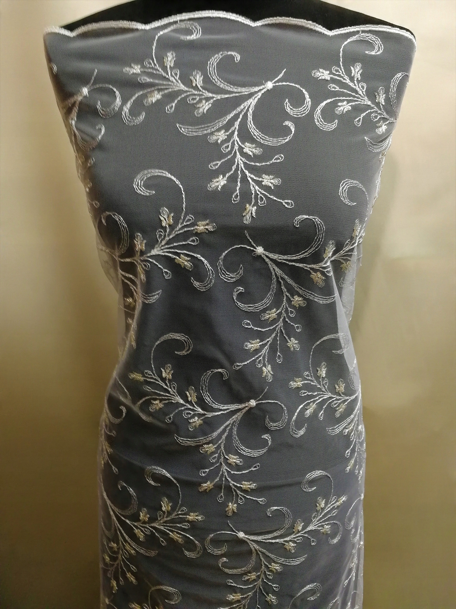 Haft na tiulu w kwiatowy wzór zdobiony HT 3349 biały + krem