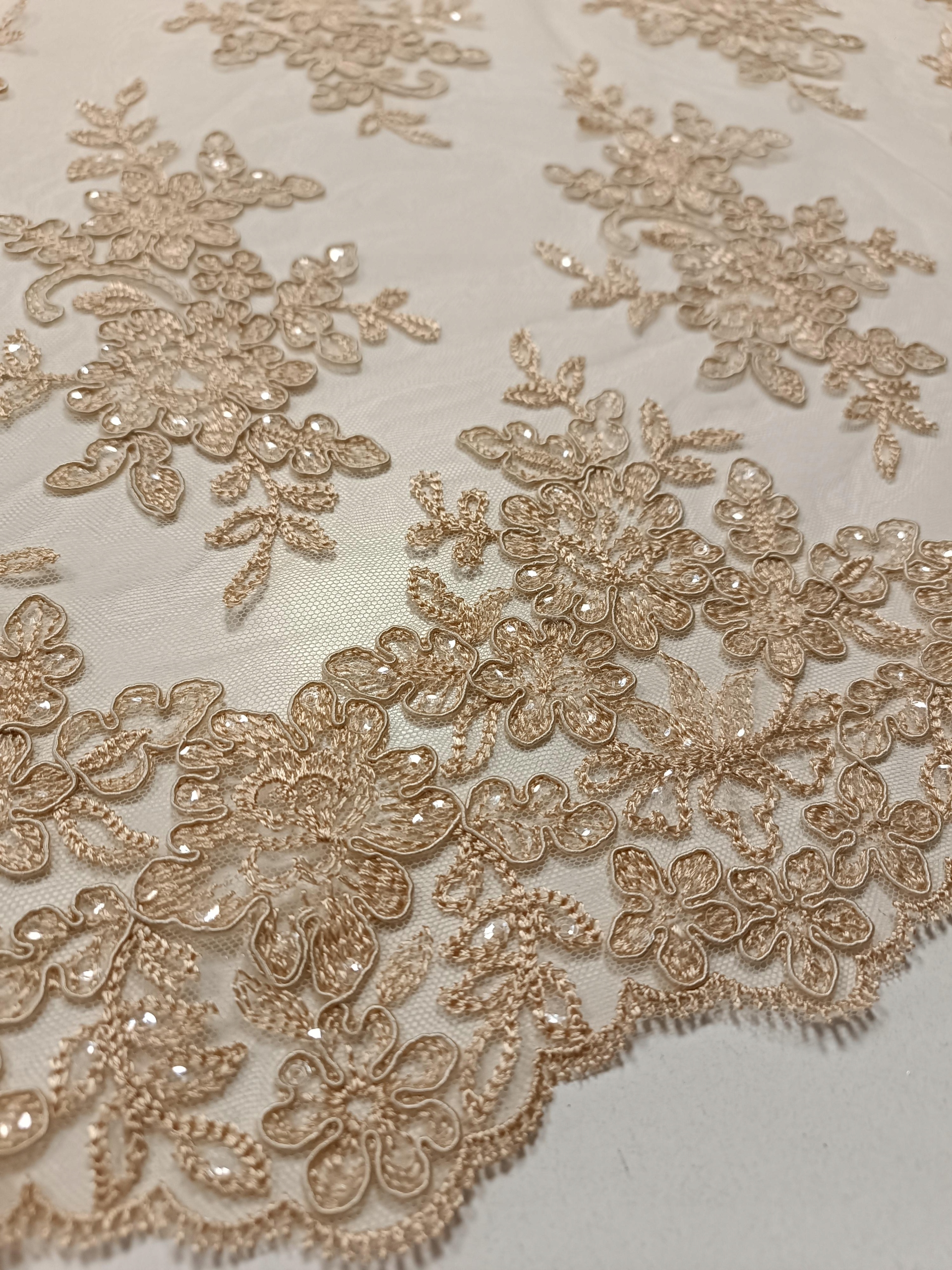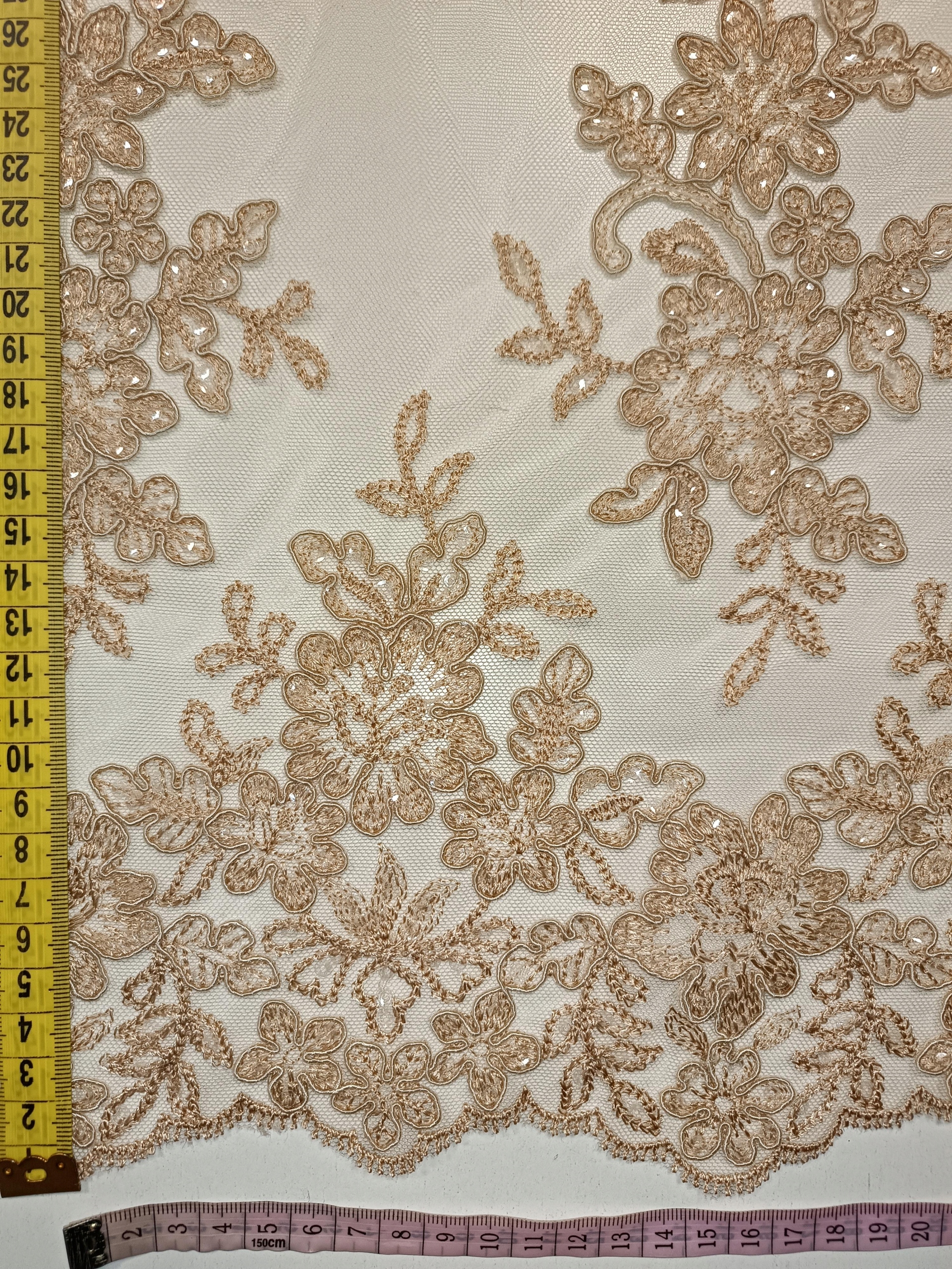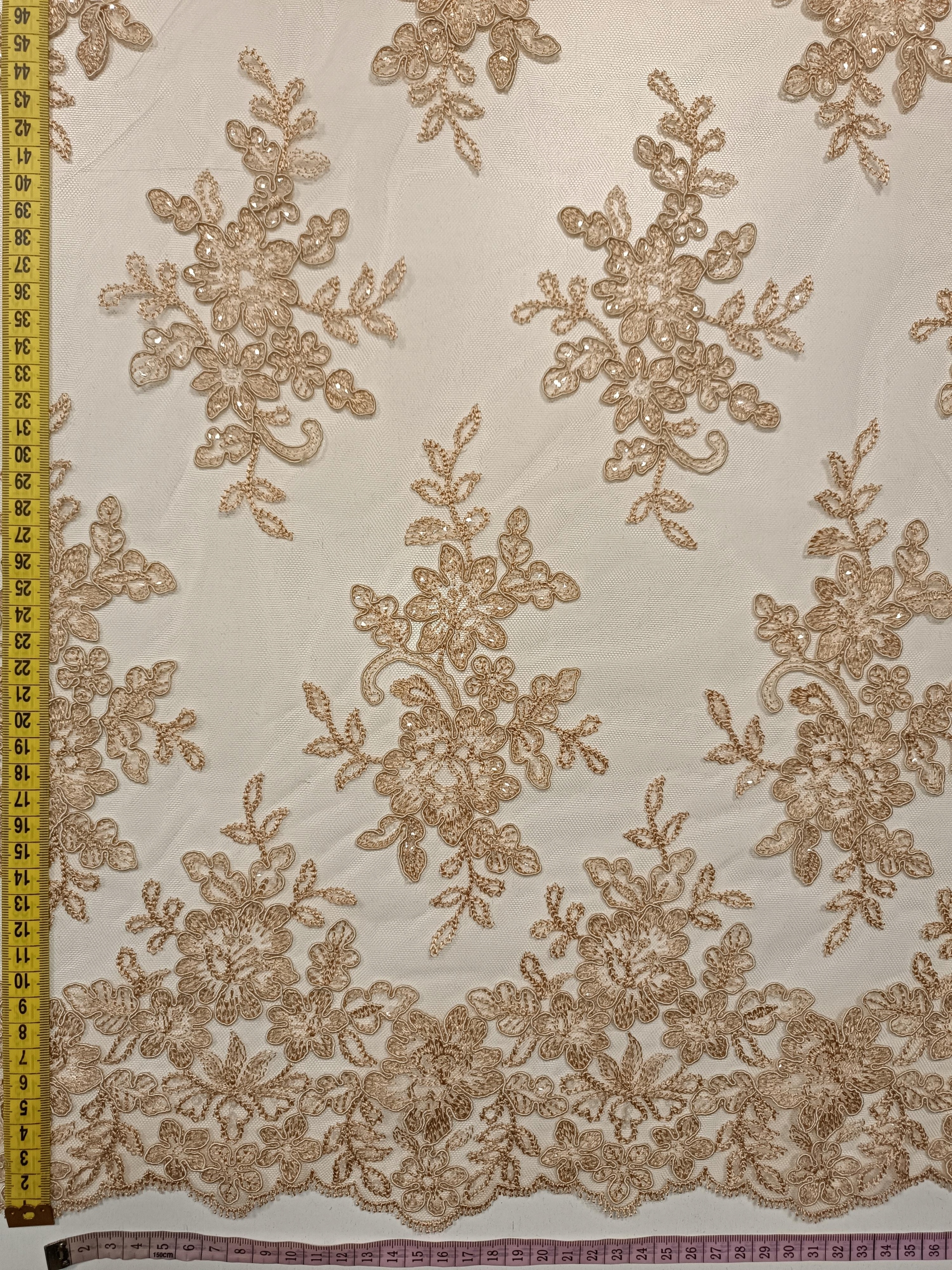 Koronka Haft Wieczorowy Ślubne HT-31 Beż -1/2mb