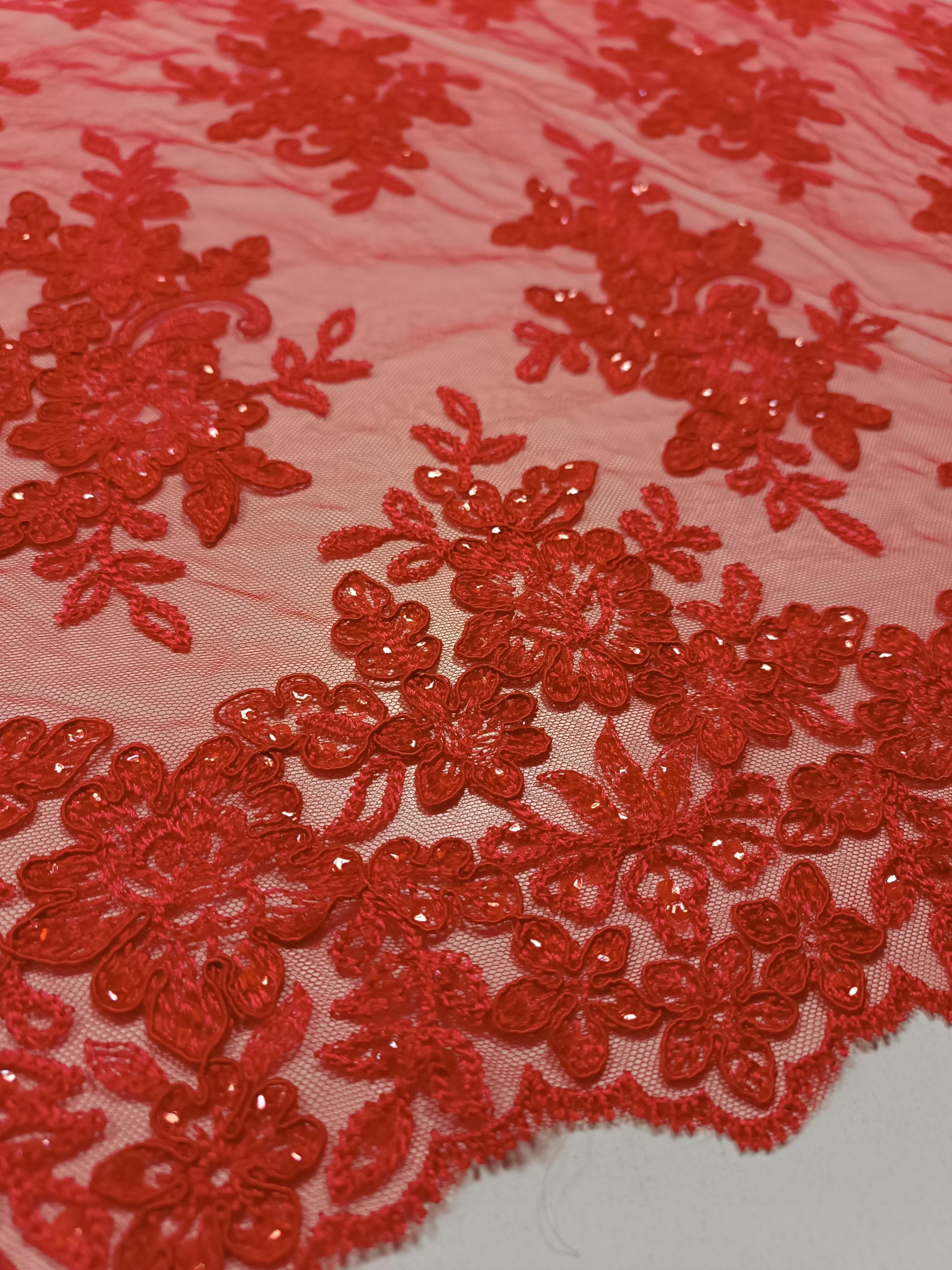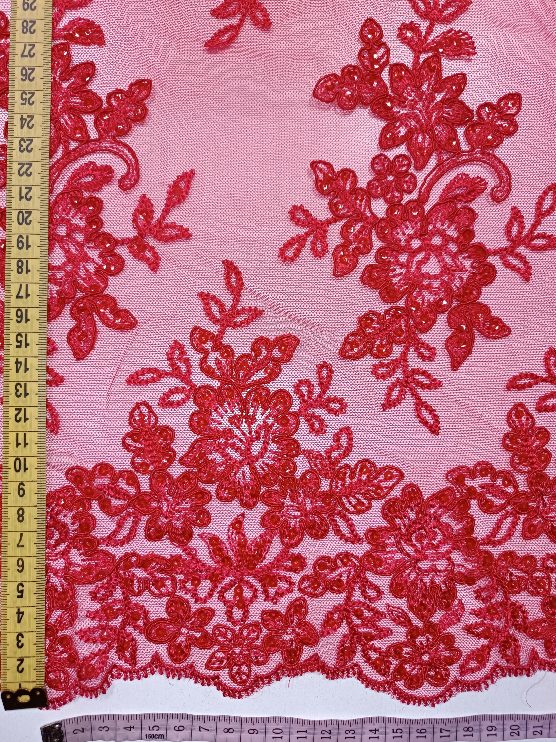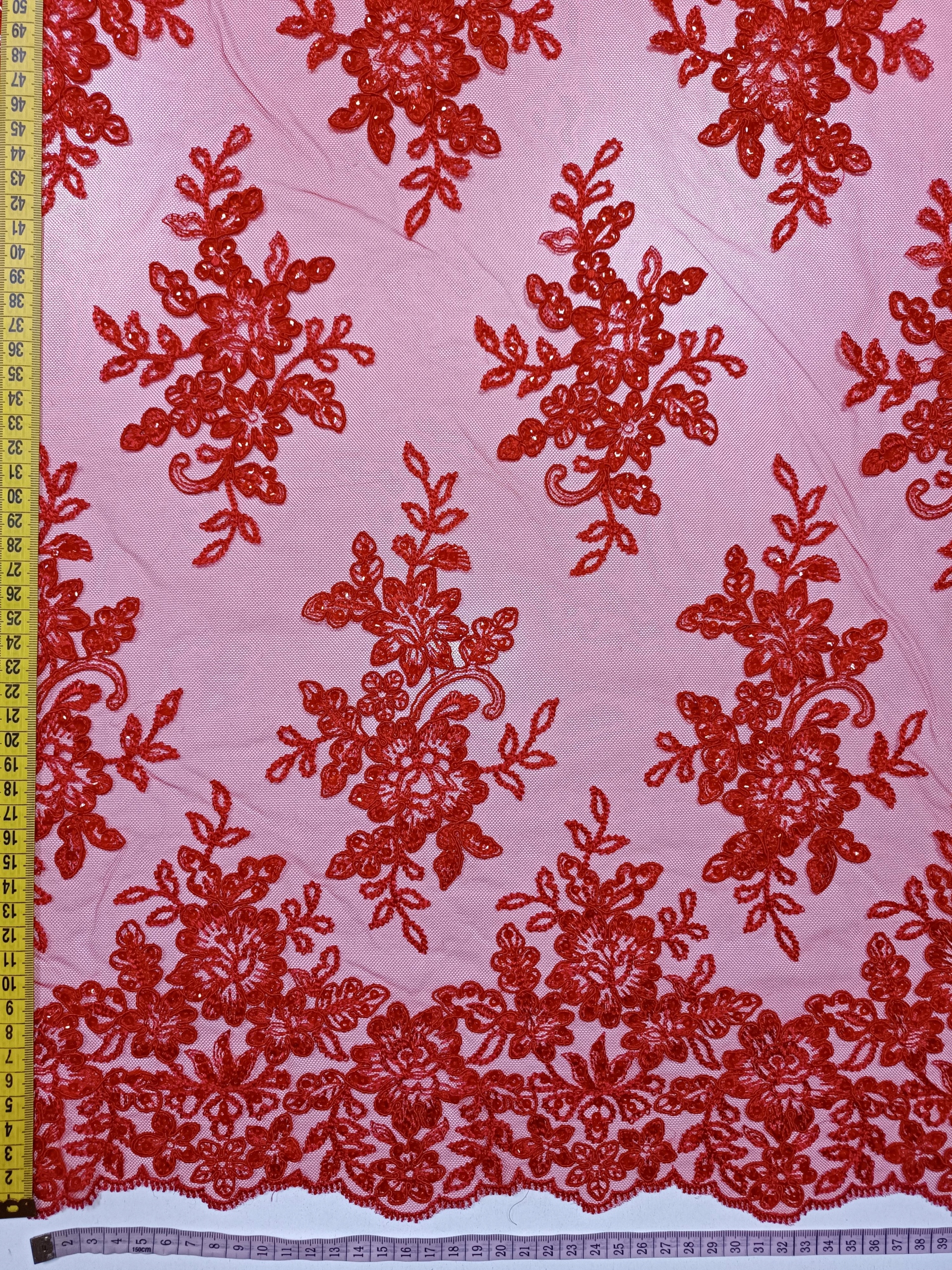 Koronka Haft Wieczorowy Ślubne HT-31 Czerwony -1/2mb