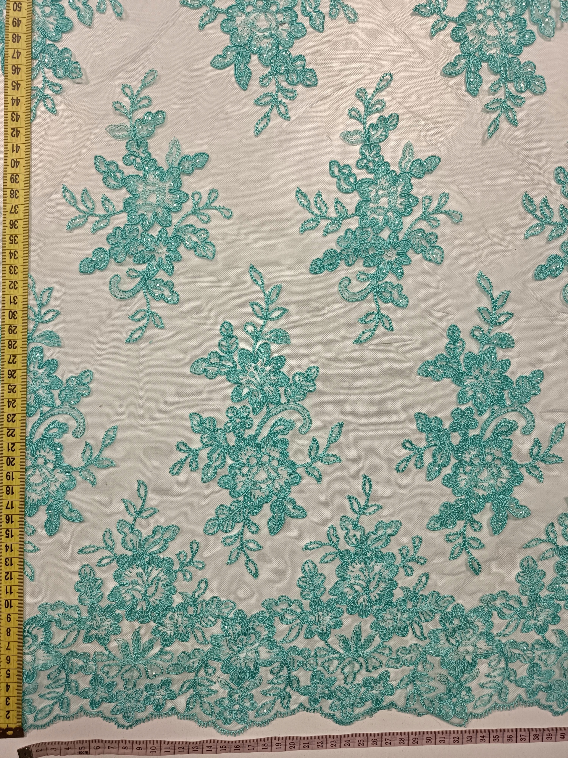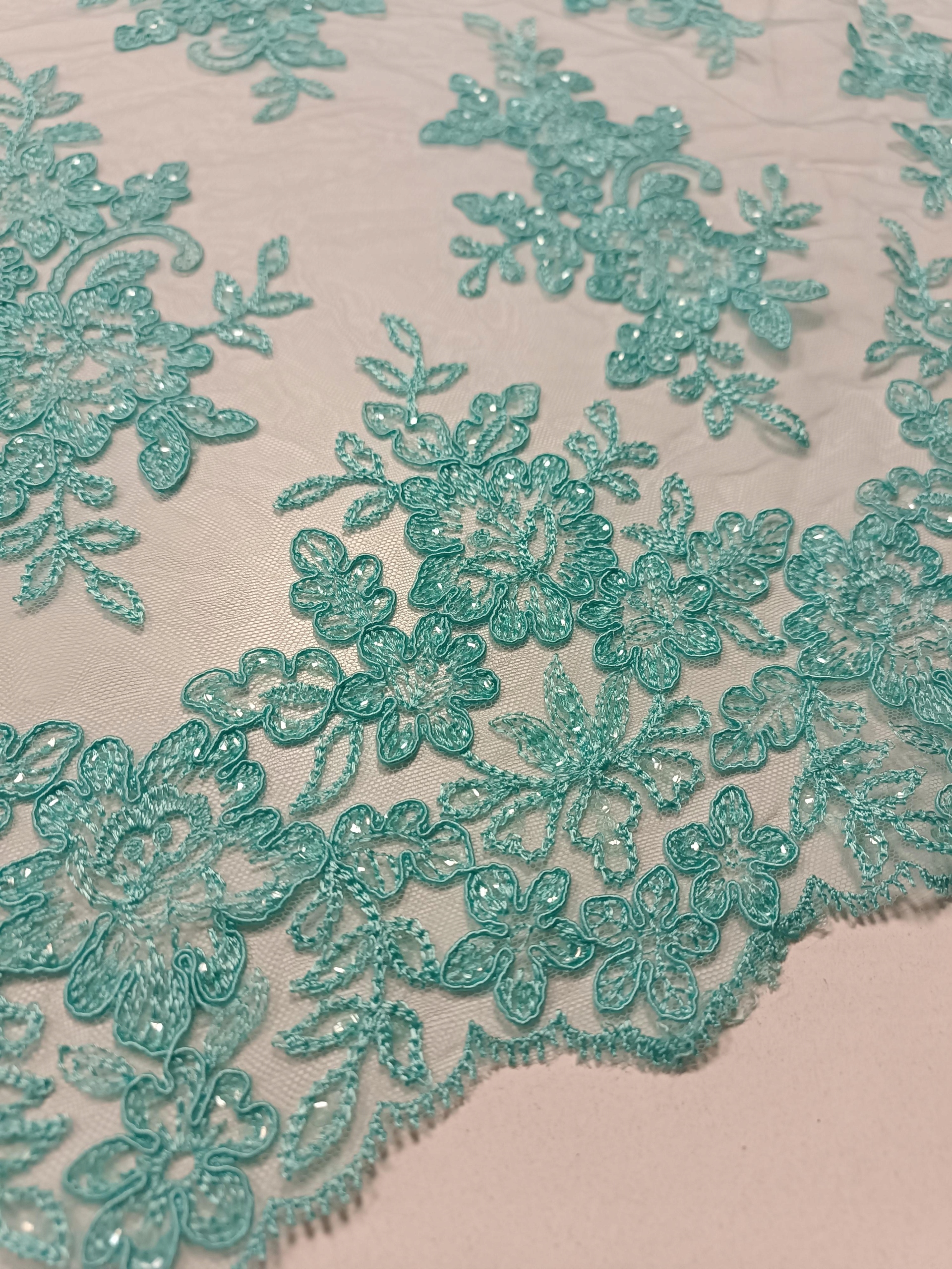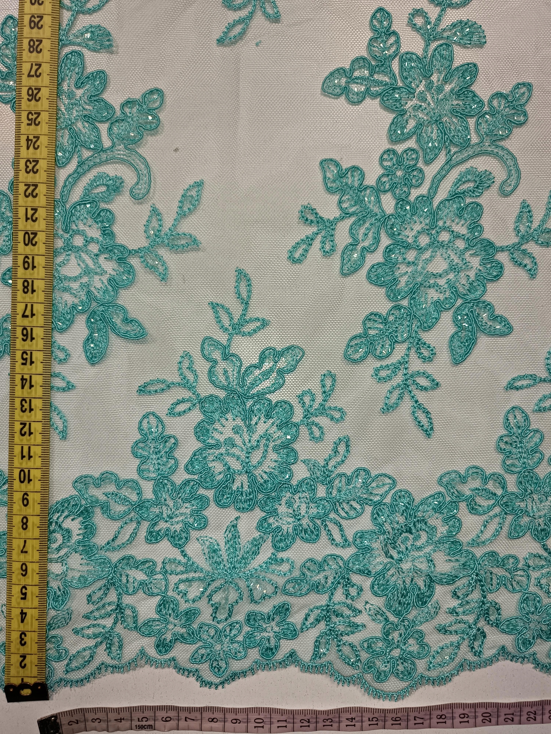 Koronka Haft Wieczorowy Ślubne HT-31 Turkus / Mięta -1/2mb