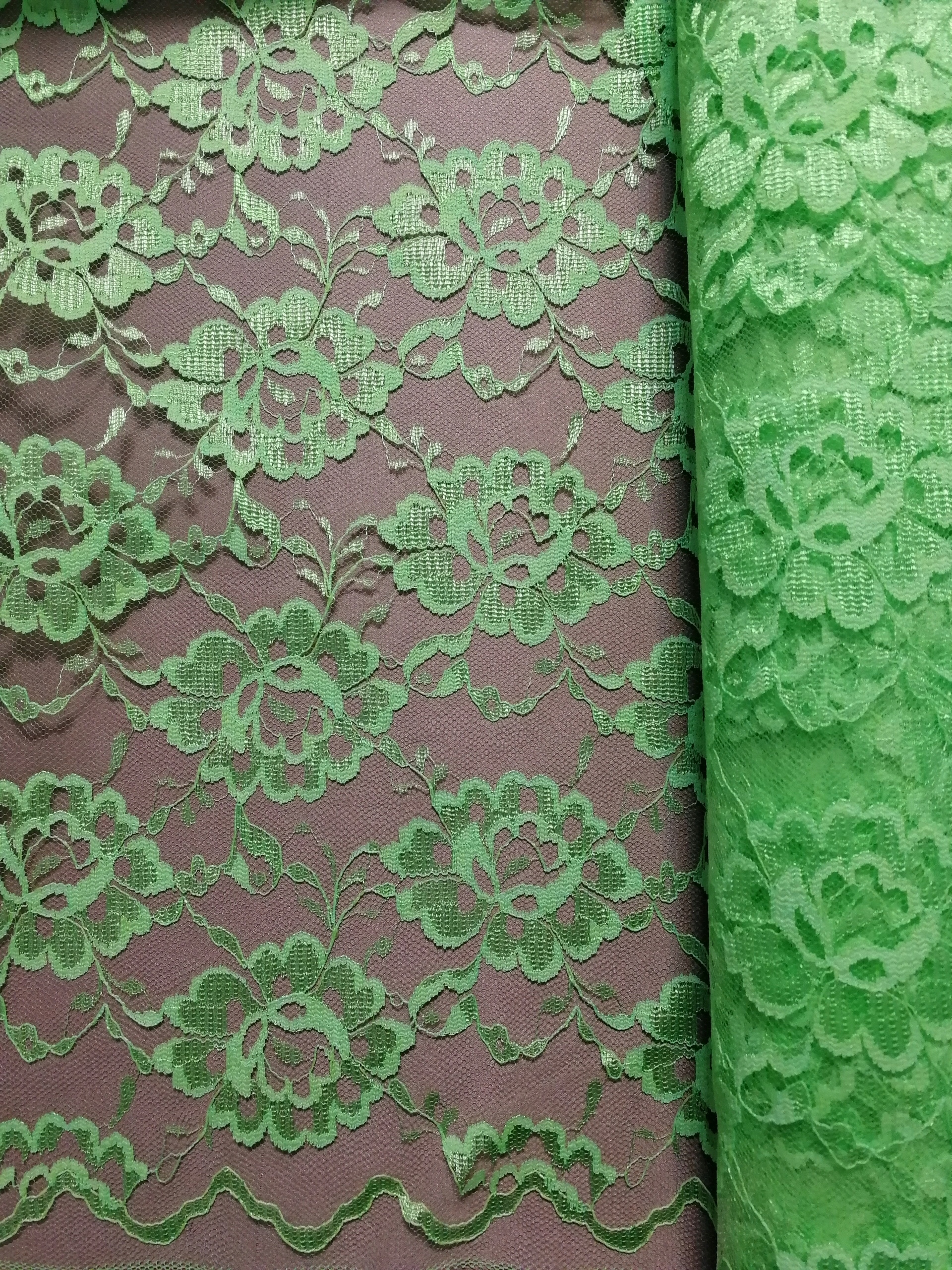 Koronka wzór kwiaty „klara” nr.9 Zielony -1/2mb