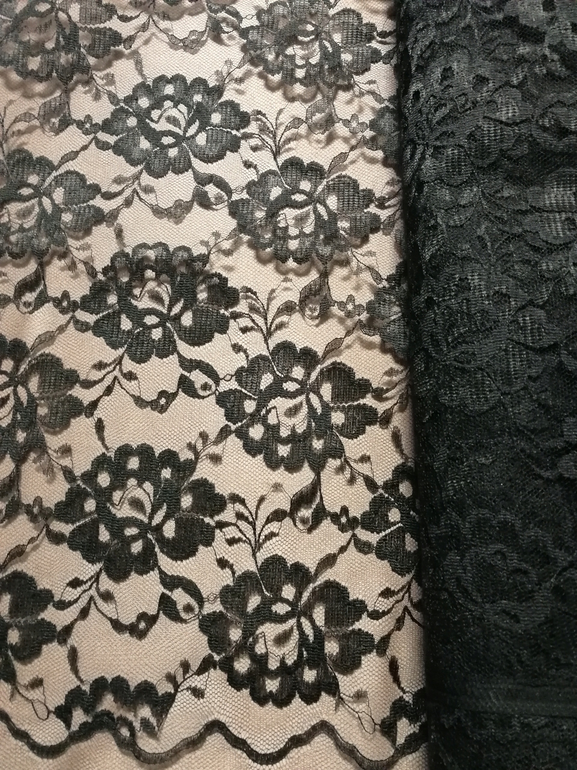 Koronka wzór kwiaty „klara” nr7 Czarny -1/2mb