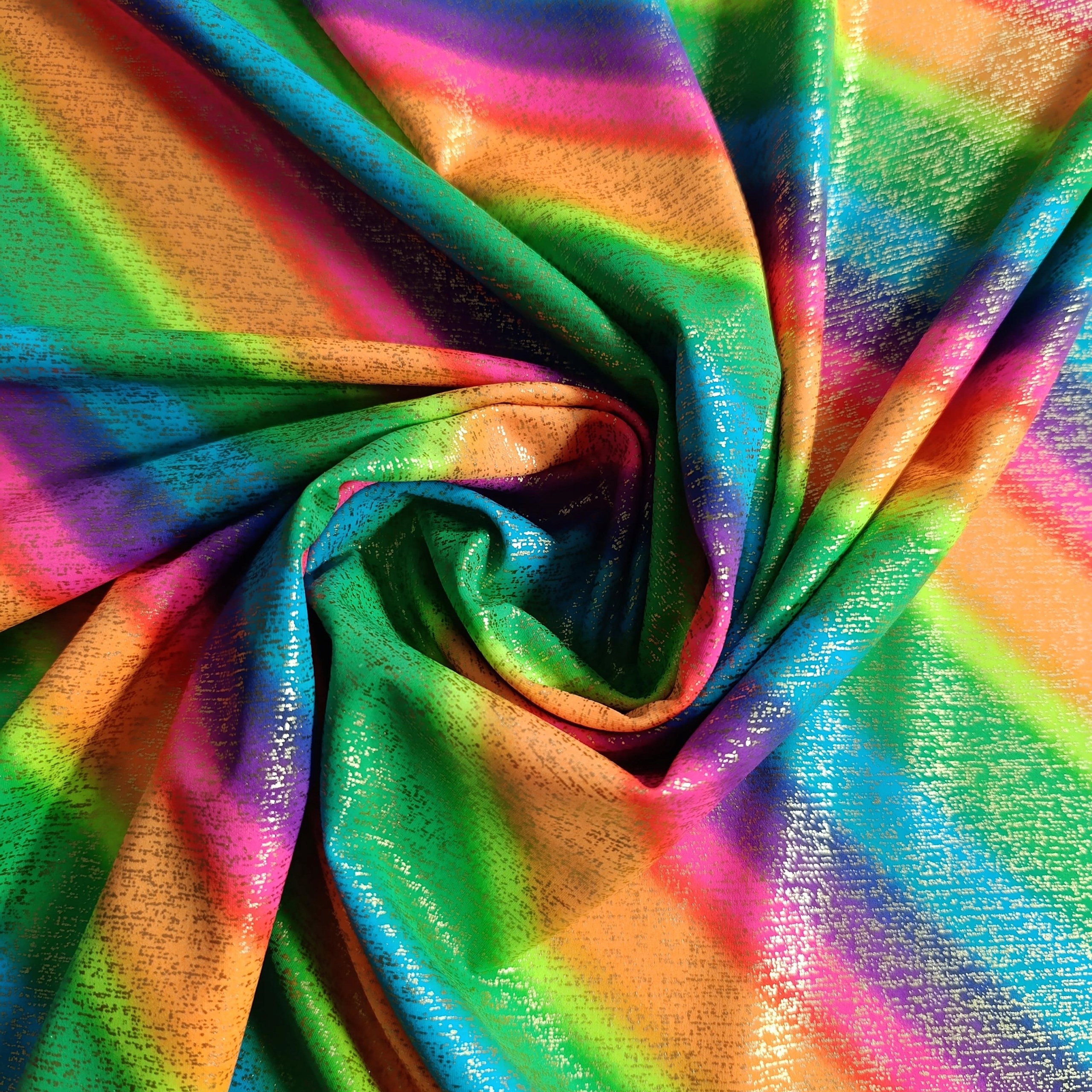 Lycra tęczowa multikolor z platynowym nadrukiem