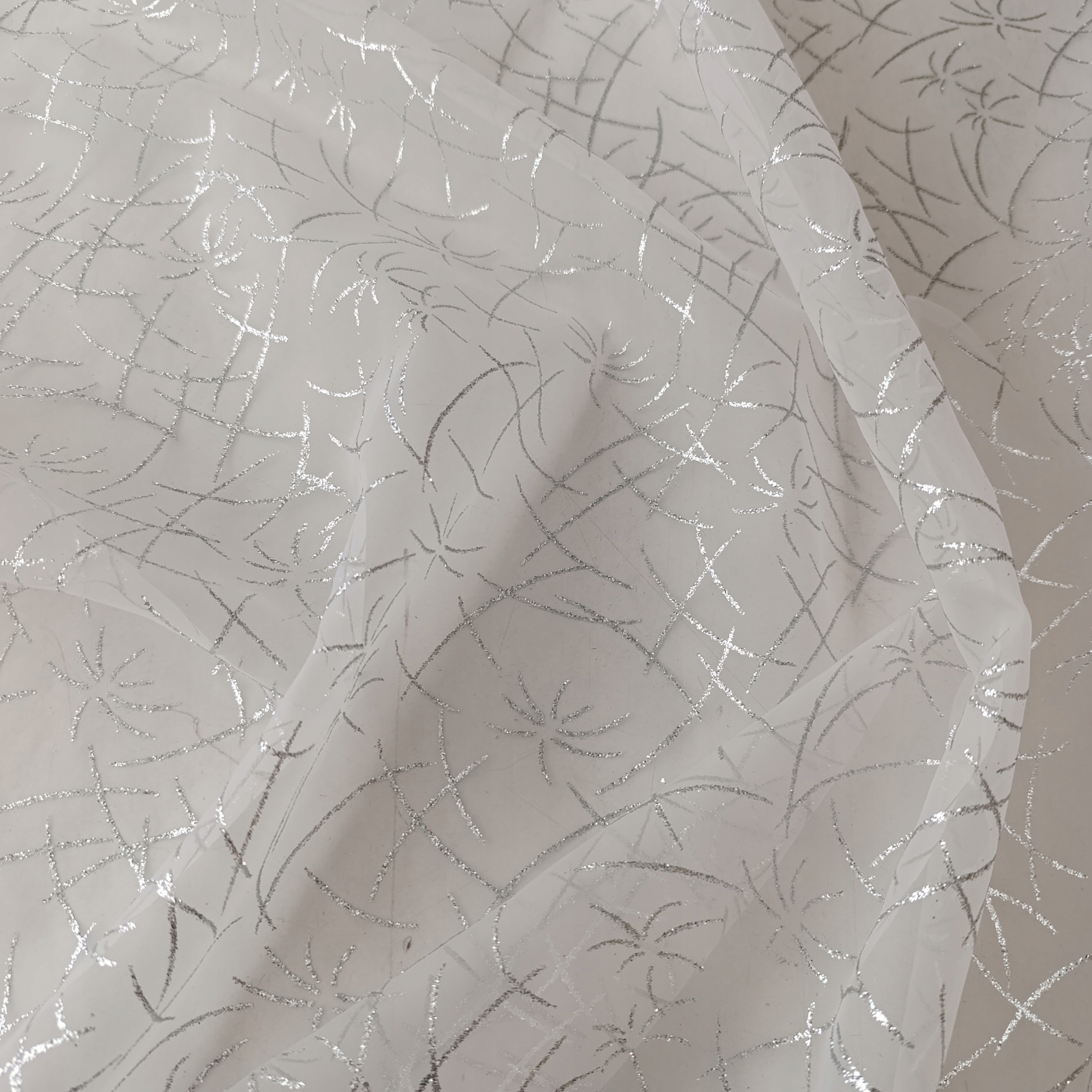Organza z brokatem „pazurki” biała ze srebrnym brokatem