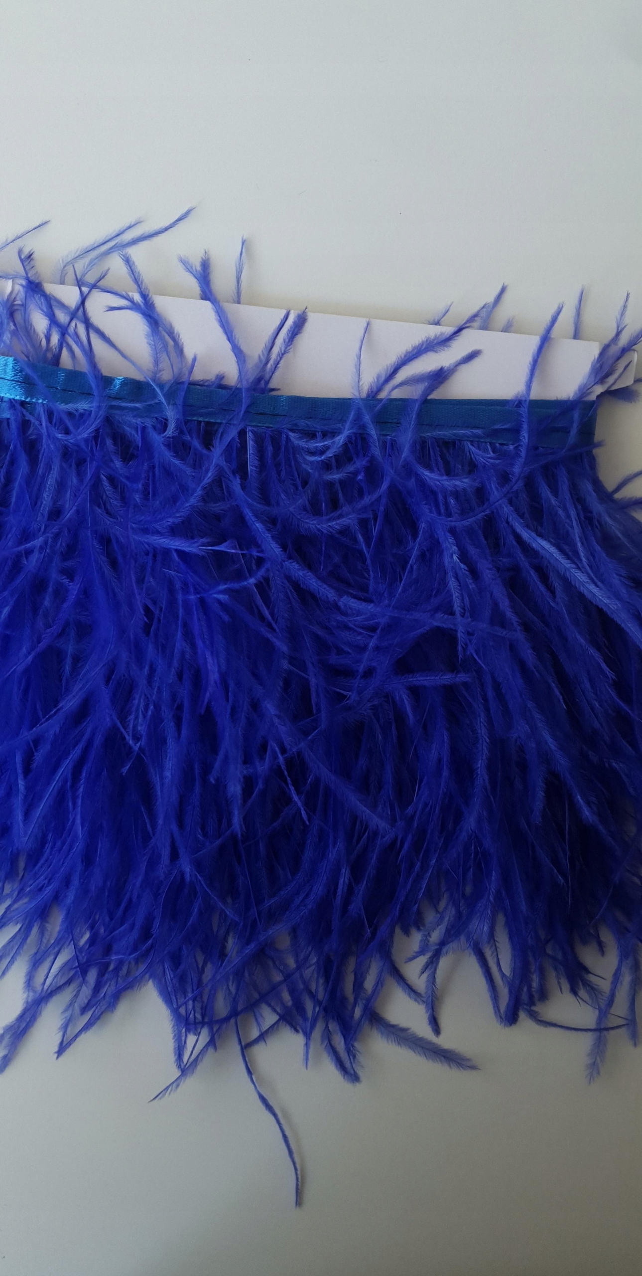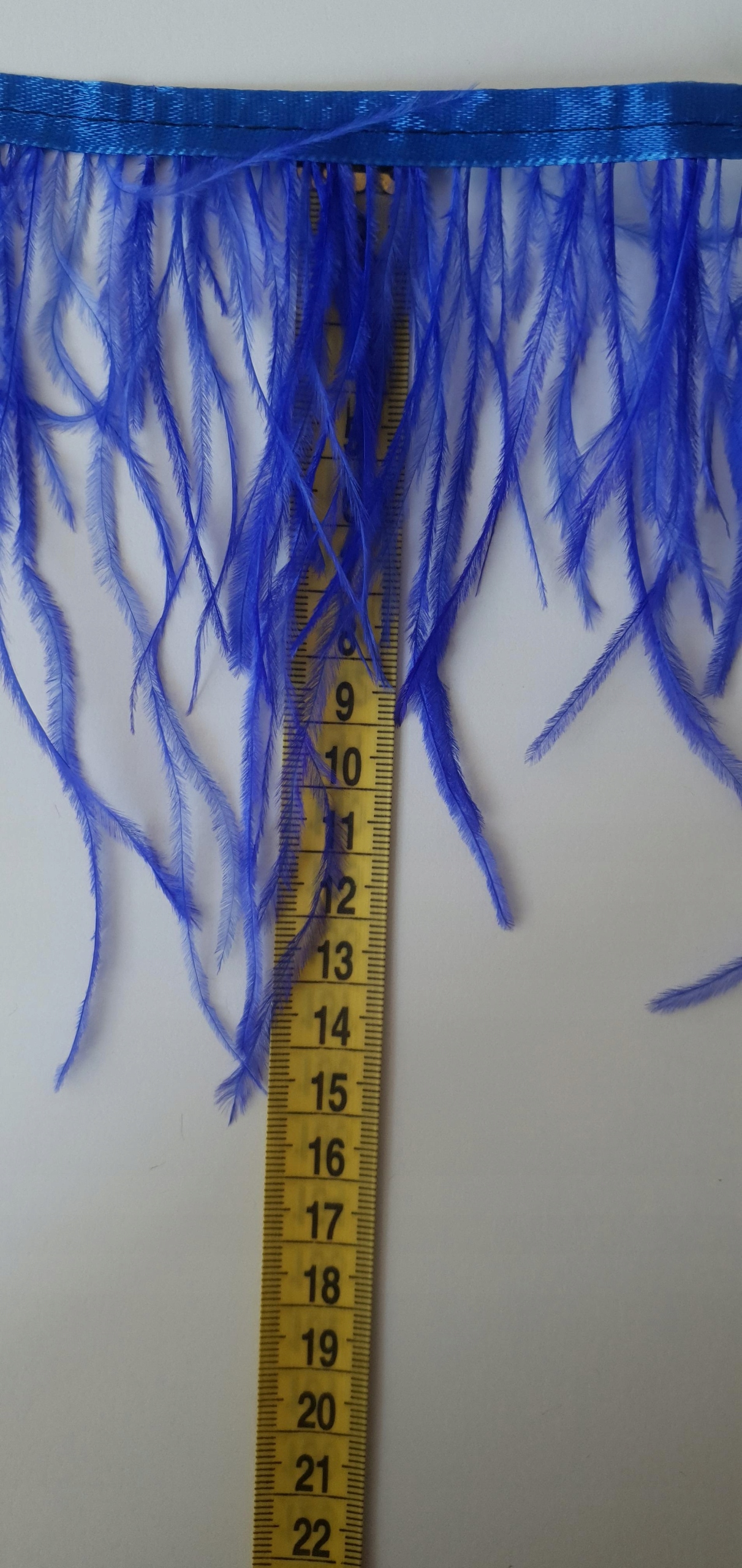 Strusie pióra na taśmie, która dopasowana jest kolorystycznie (chaber)