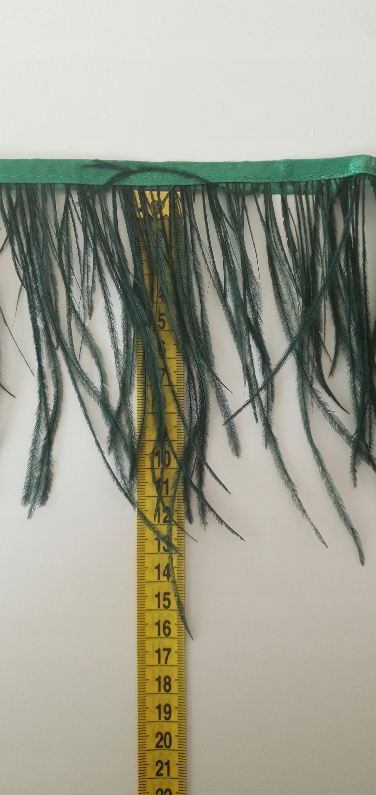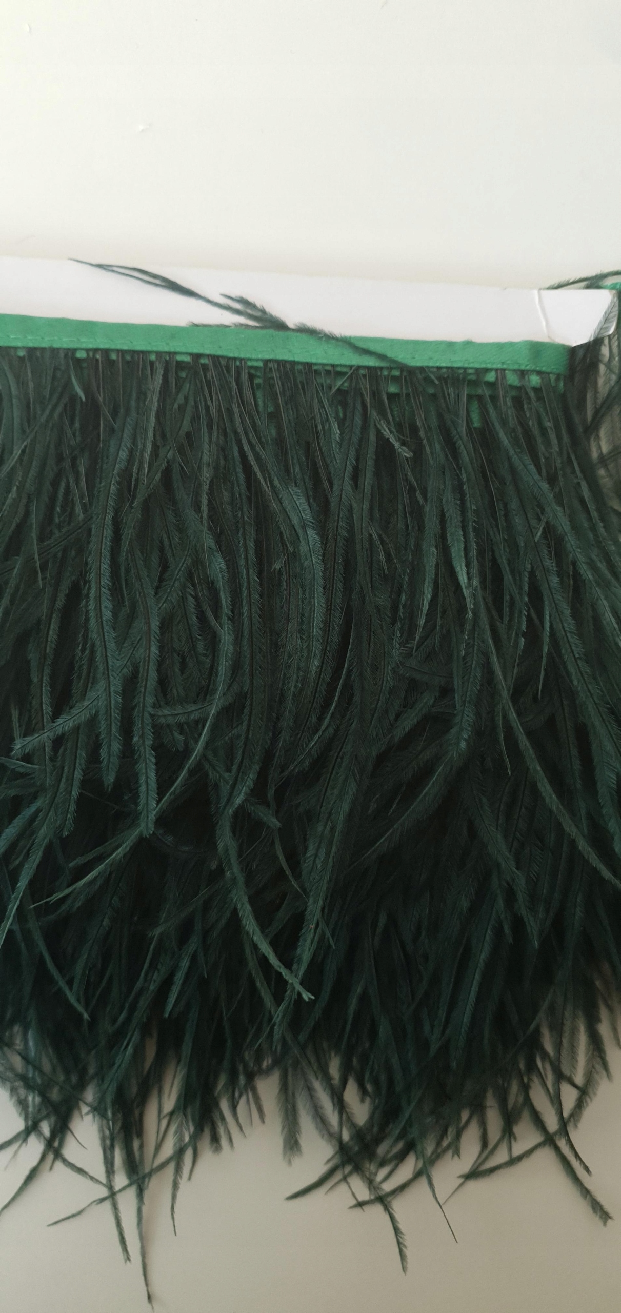 Strusie pióra na taśmie, która dopasowana jest kolorystycznie (ciemny zielony)