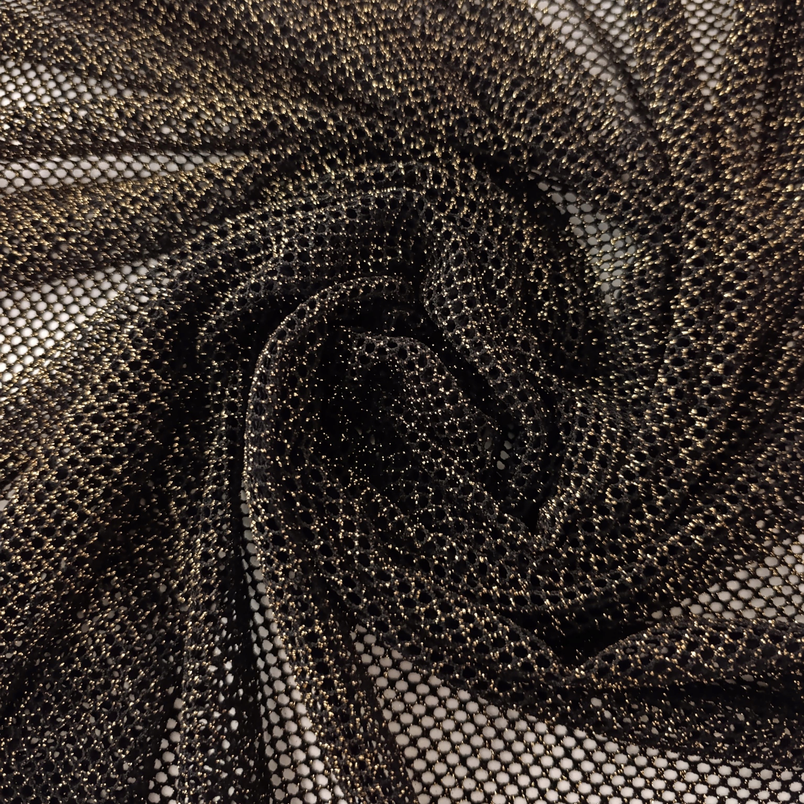 Siatka elastyczna „Kabaretka” Czarny z Brokatem Złotym -1/2mb