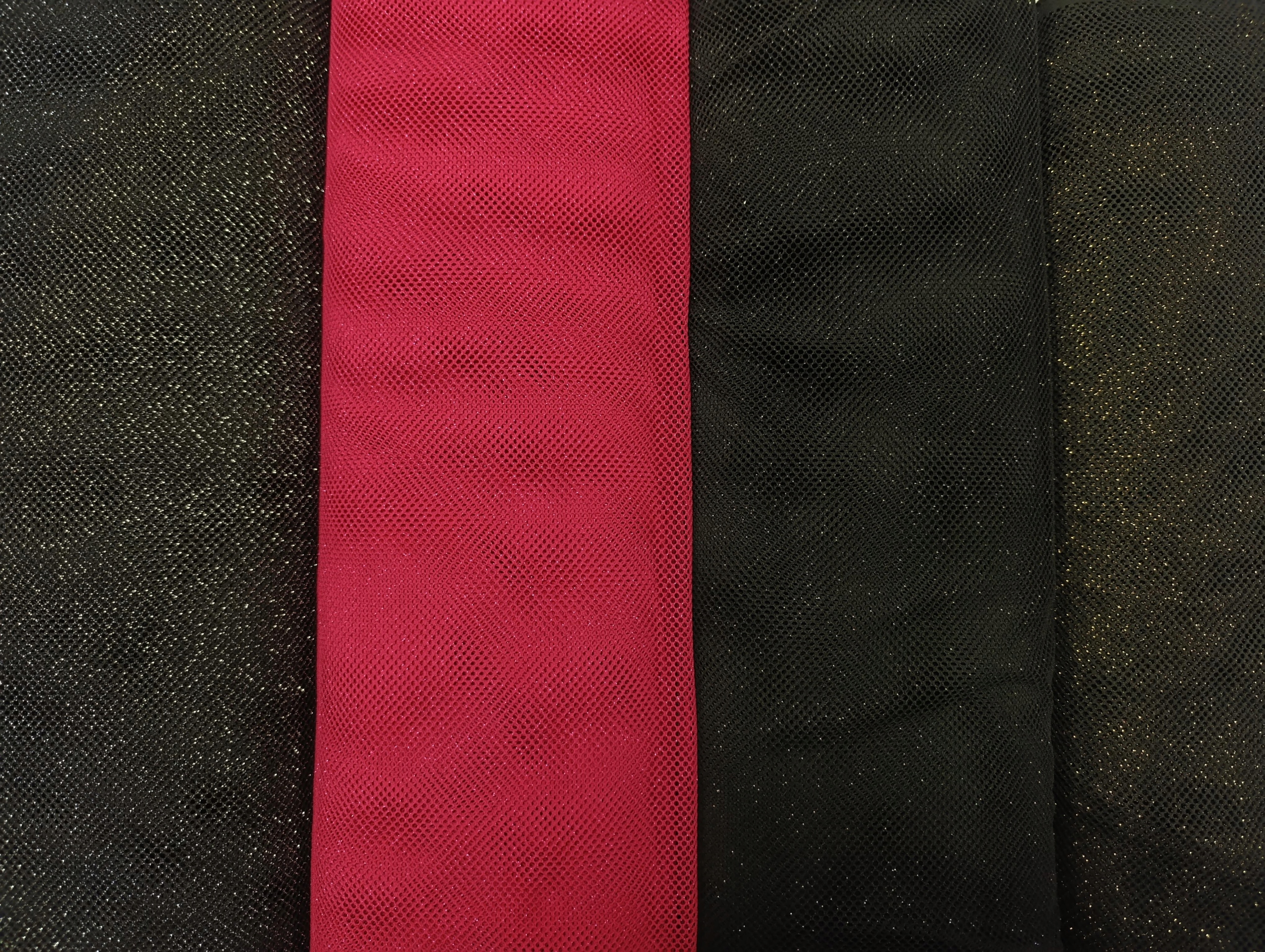 Elastyczna czarna siateczka, często używana do tworzenia sukienek do tańca, ponieważ zapewnia wygodę, elastyczność i łatwość ruchu. Często używana do spódnic lub dolnych części sukienek do tańca, szczególnie w stylach takich jak tango, flamenco, balet i innych tańcach, które wymagają szerokich ruchów i podkreślają ruch ciała.