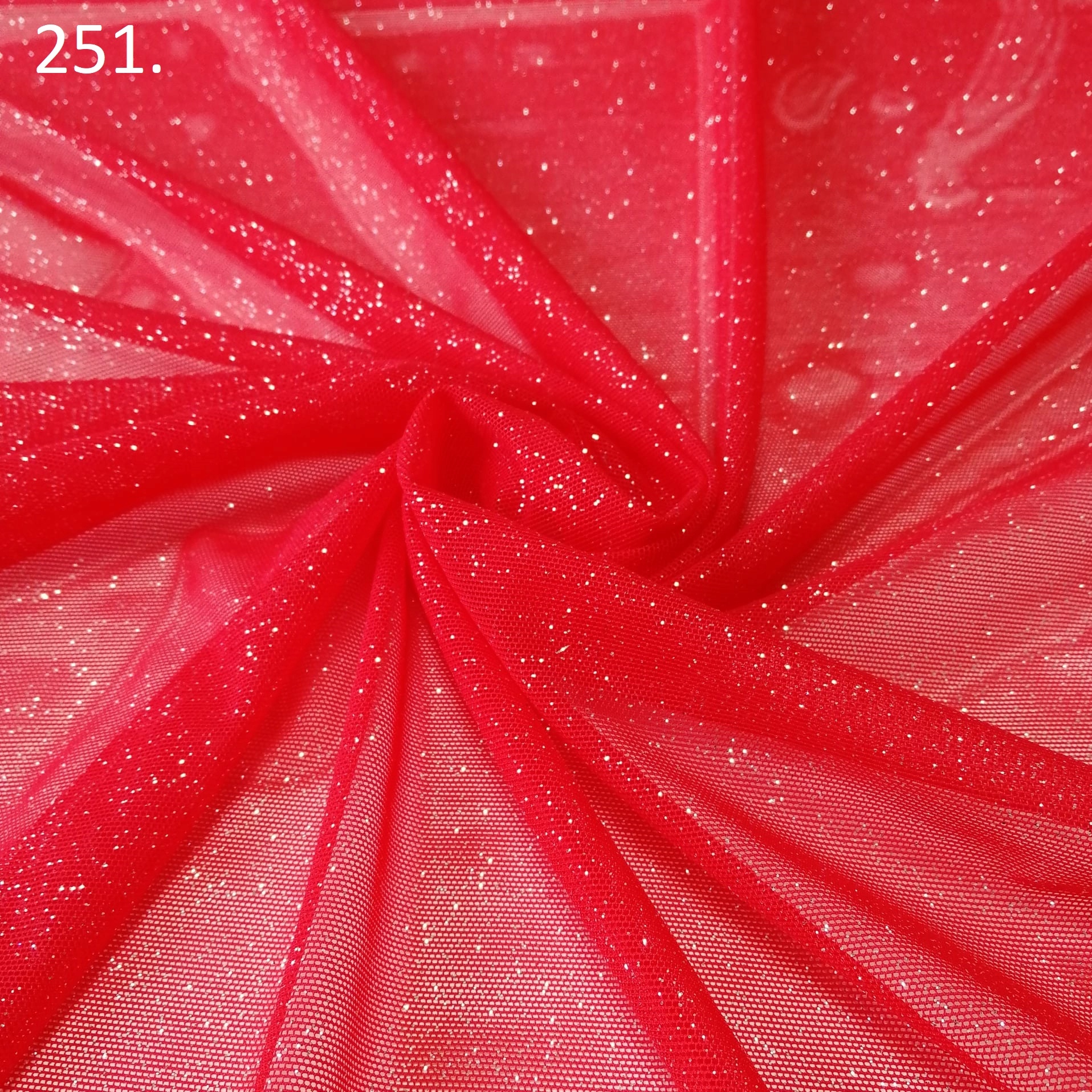 Siatka taneczna, tiul elastyczny z brokatem „SAMBA” nr.251 czerwony -1/2mb