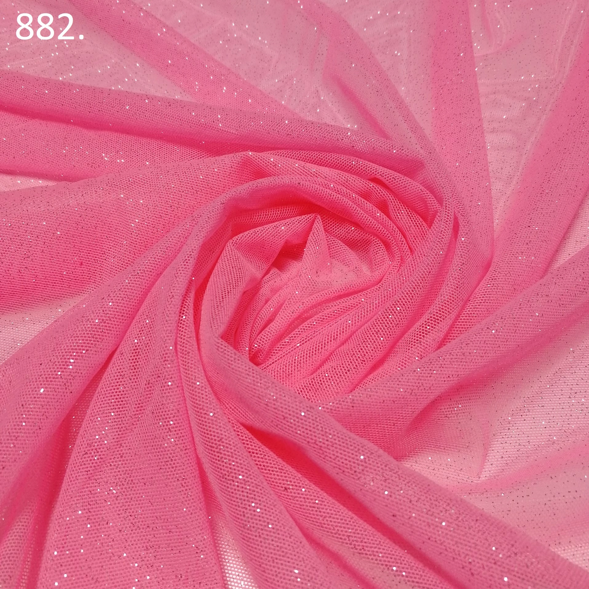 Siatka taneczna, tiul elastyczny z brokatem „SAMBA” nr.882 róż fluo -1/2mb