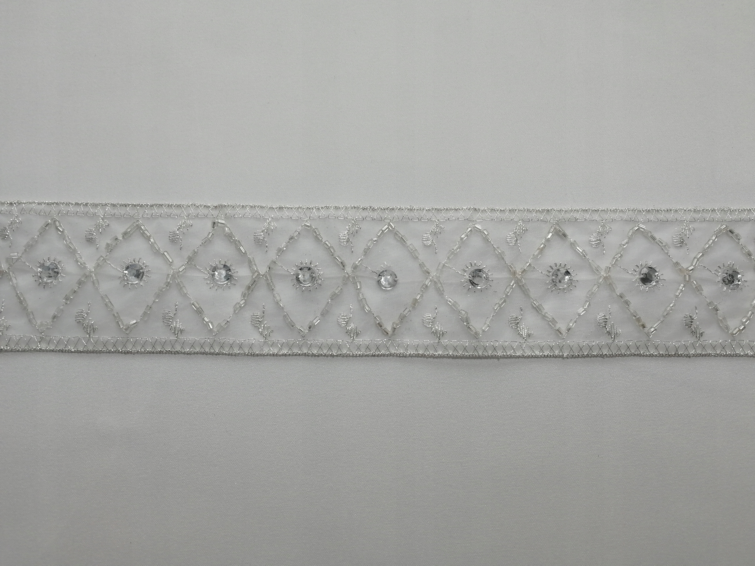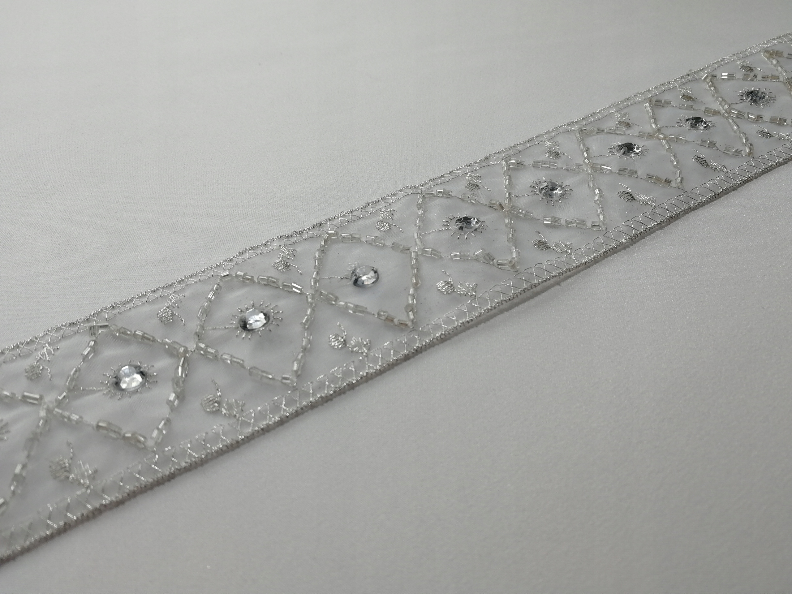 Taśma koronka ozdobna ślubna nr.99002 biały + srebro lekko zdobiona