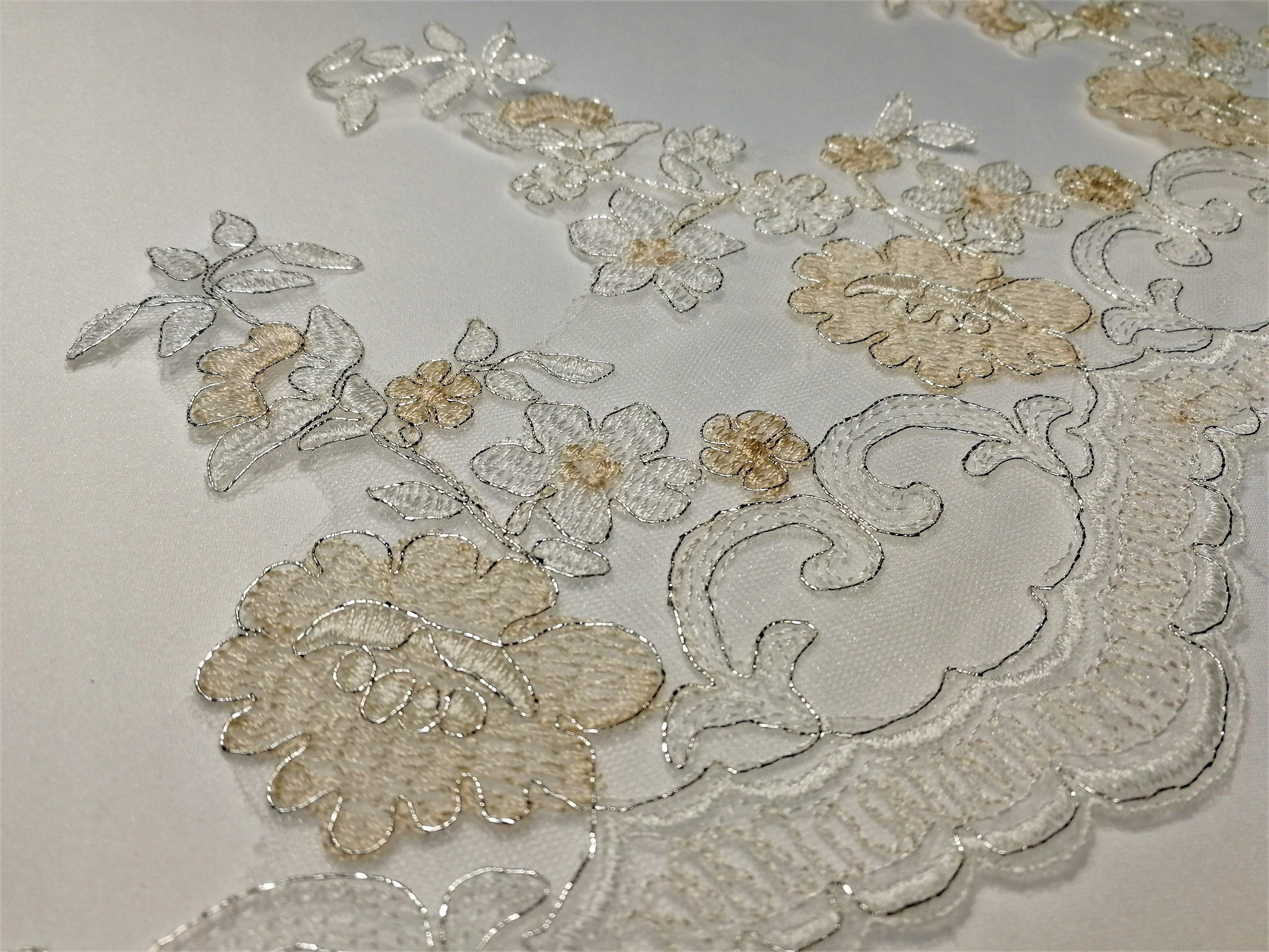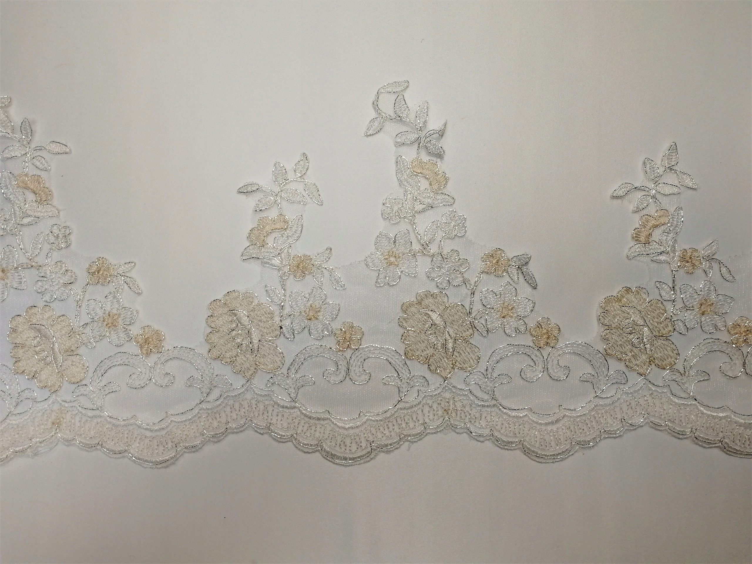 Taśma Koronka Ślubna Ozdobna TK25065 Krem + Beż + Srebro -1/2mb