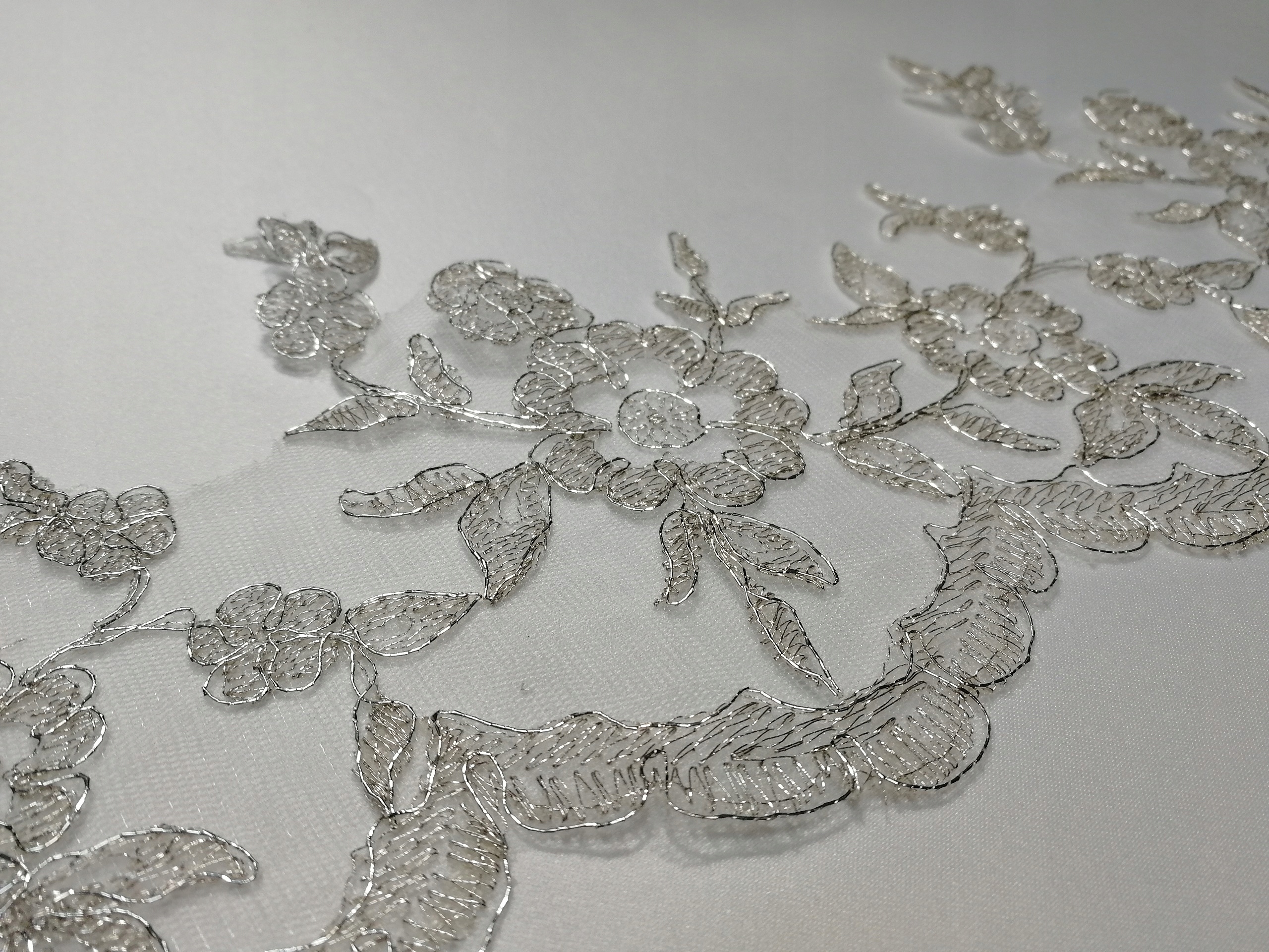 Taśma Ślubna Ozdobna TKN 25063 Krem + Srebro -1/2mb