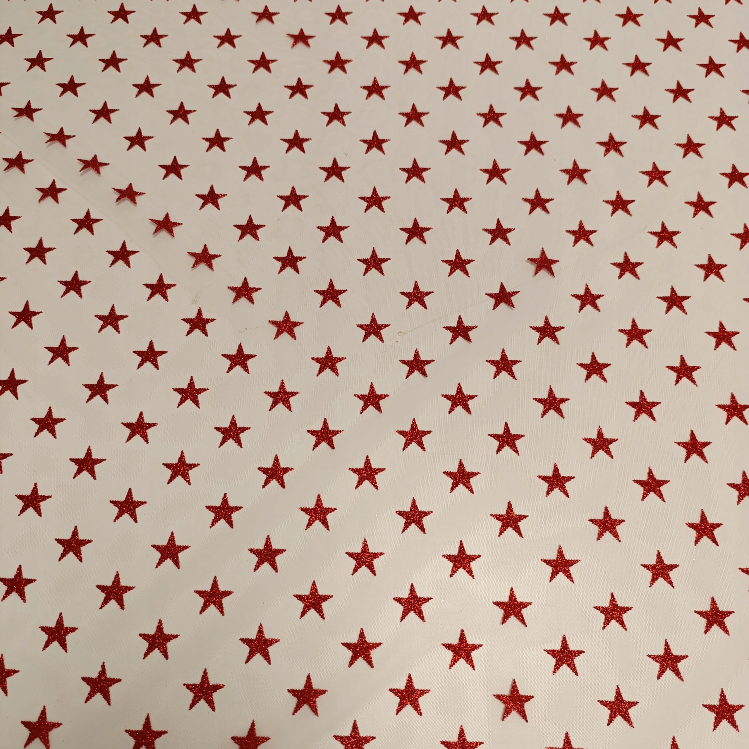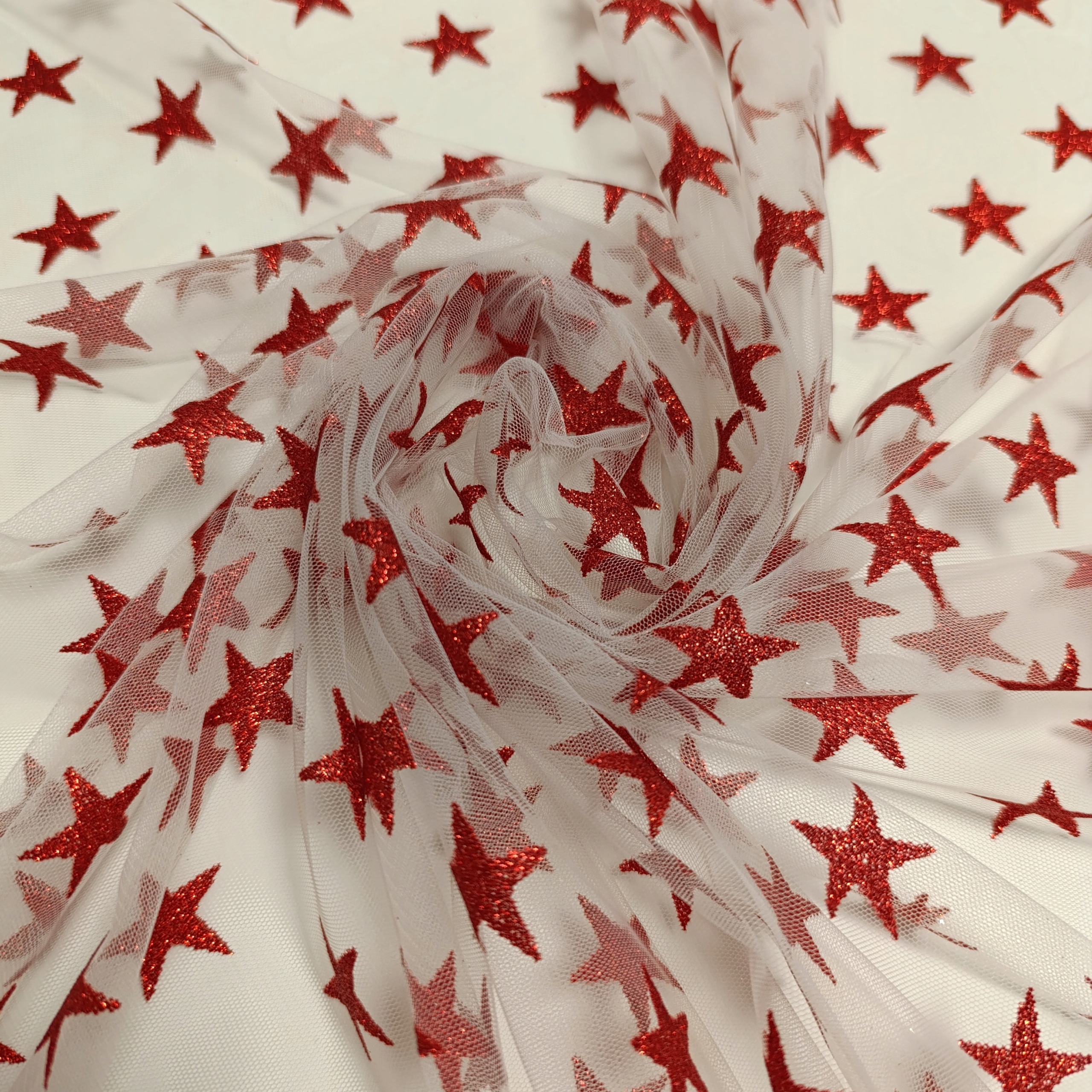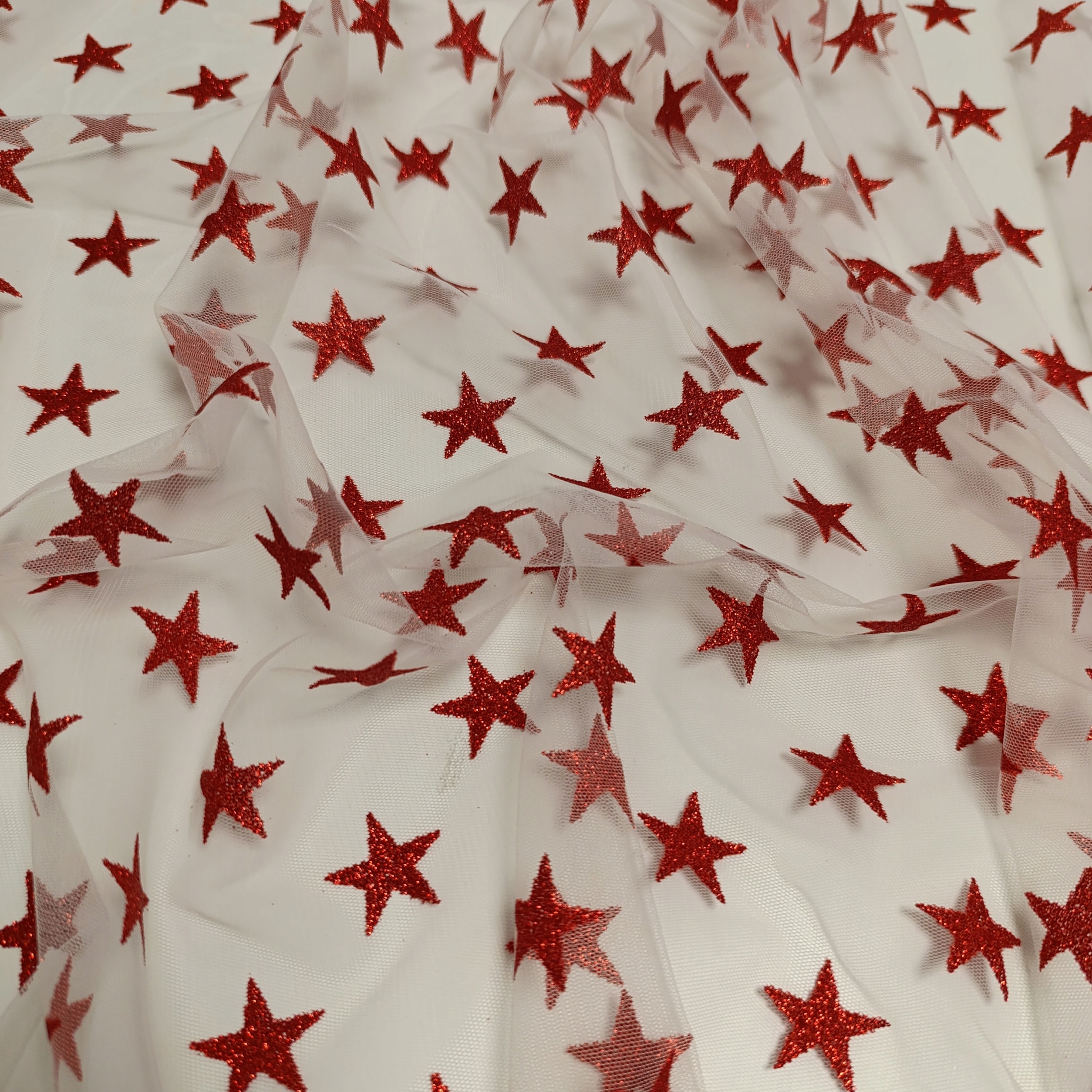 Tiul z brokatowymi gwiazdami w kolorze czerwonym.