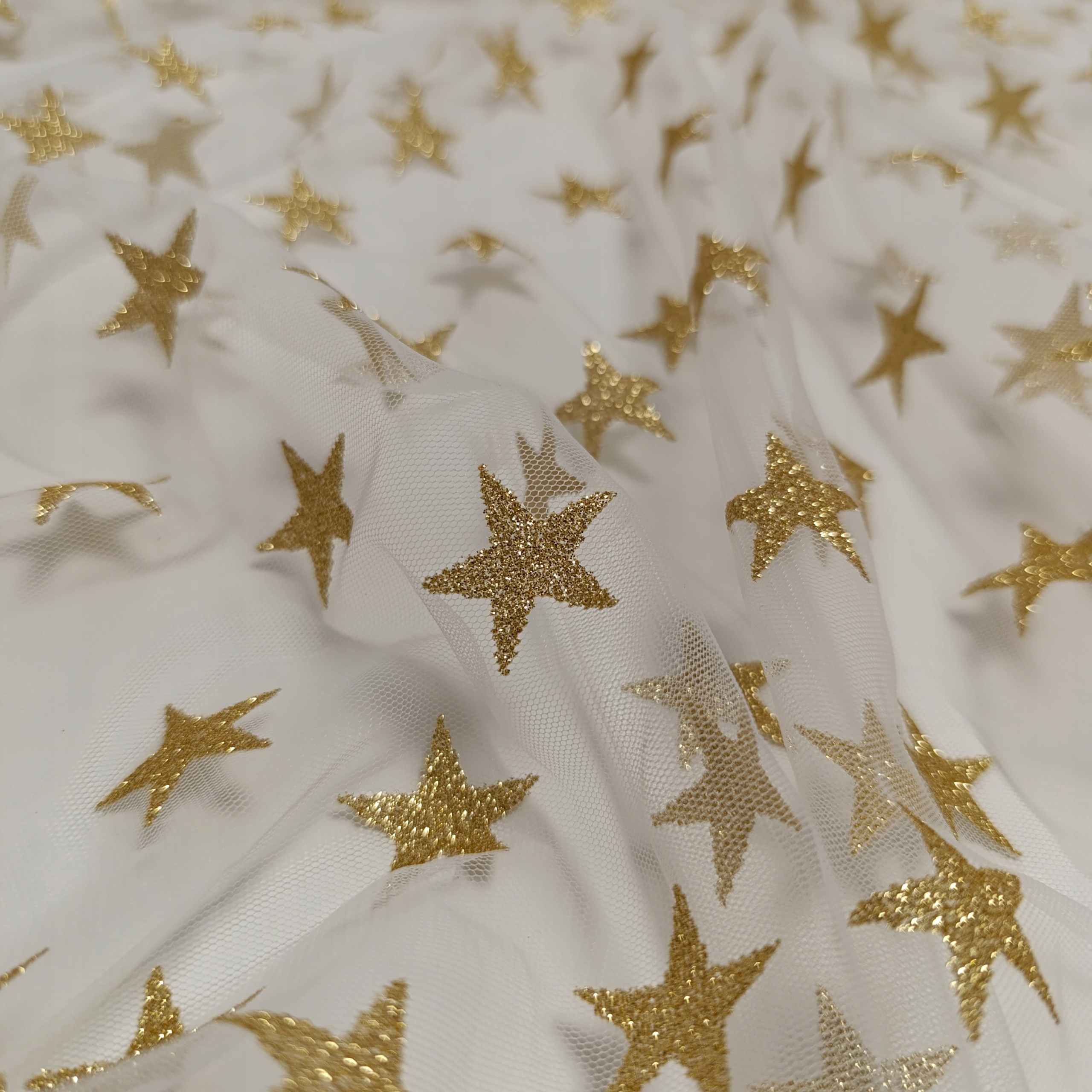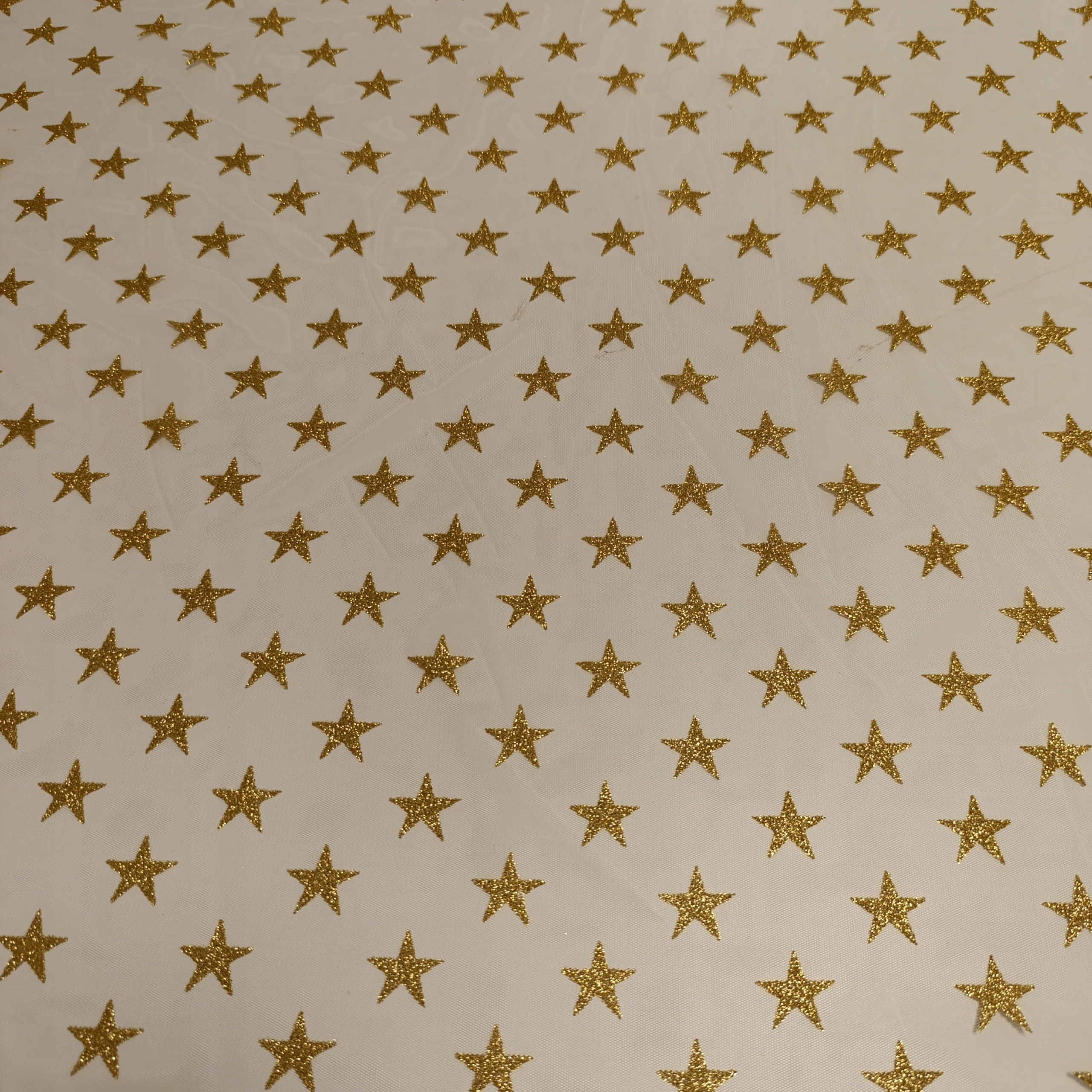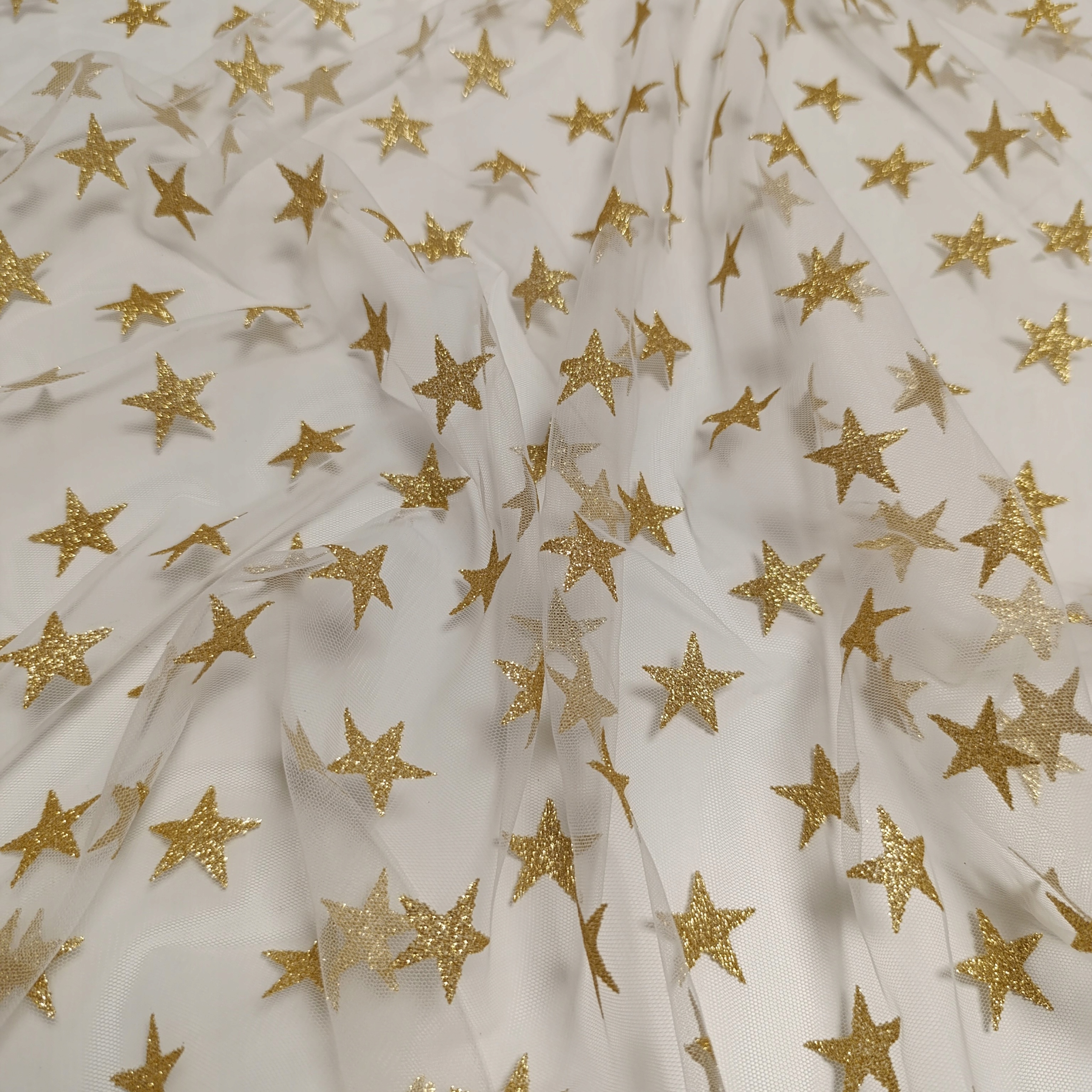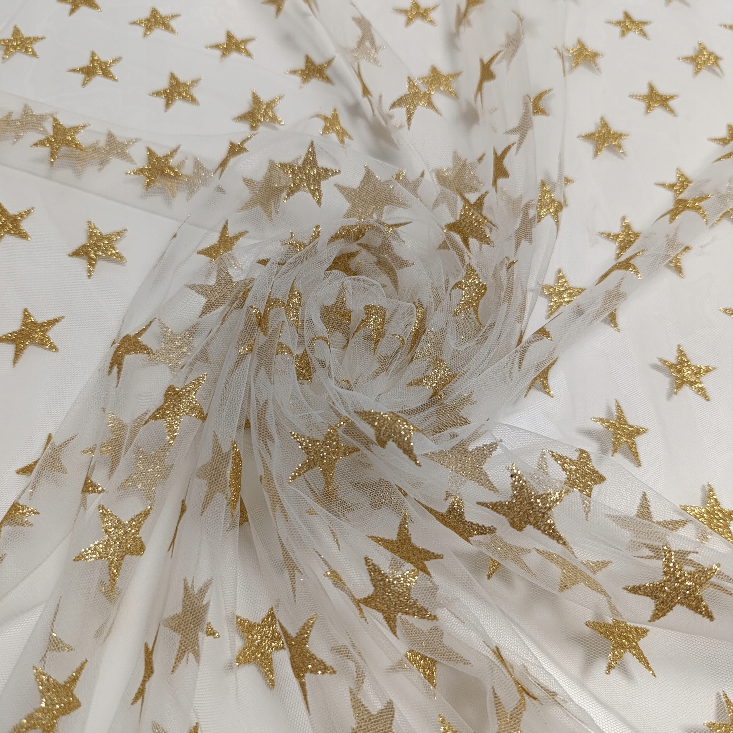 Tiul z brokatowymi gwiazdami w kolorze złotym