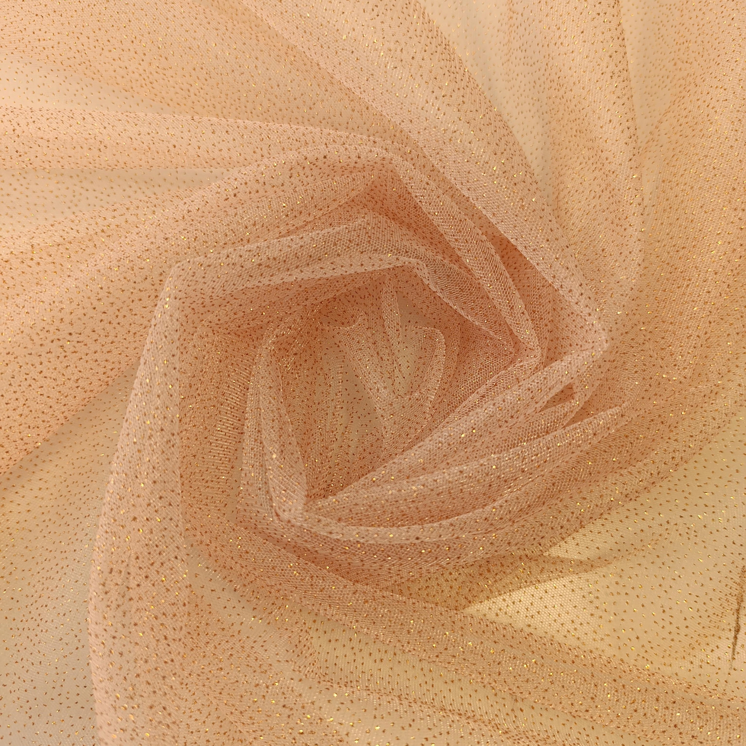 Tiul Brokat nr 263 łosoś ze złotym brokatem