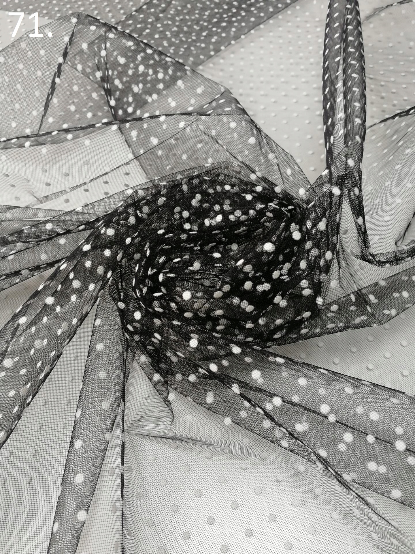 Tiul w kropki Flok nr.71 Czarny w Białe Kropki -1/2mb